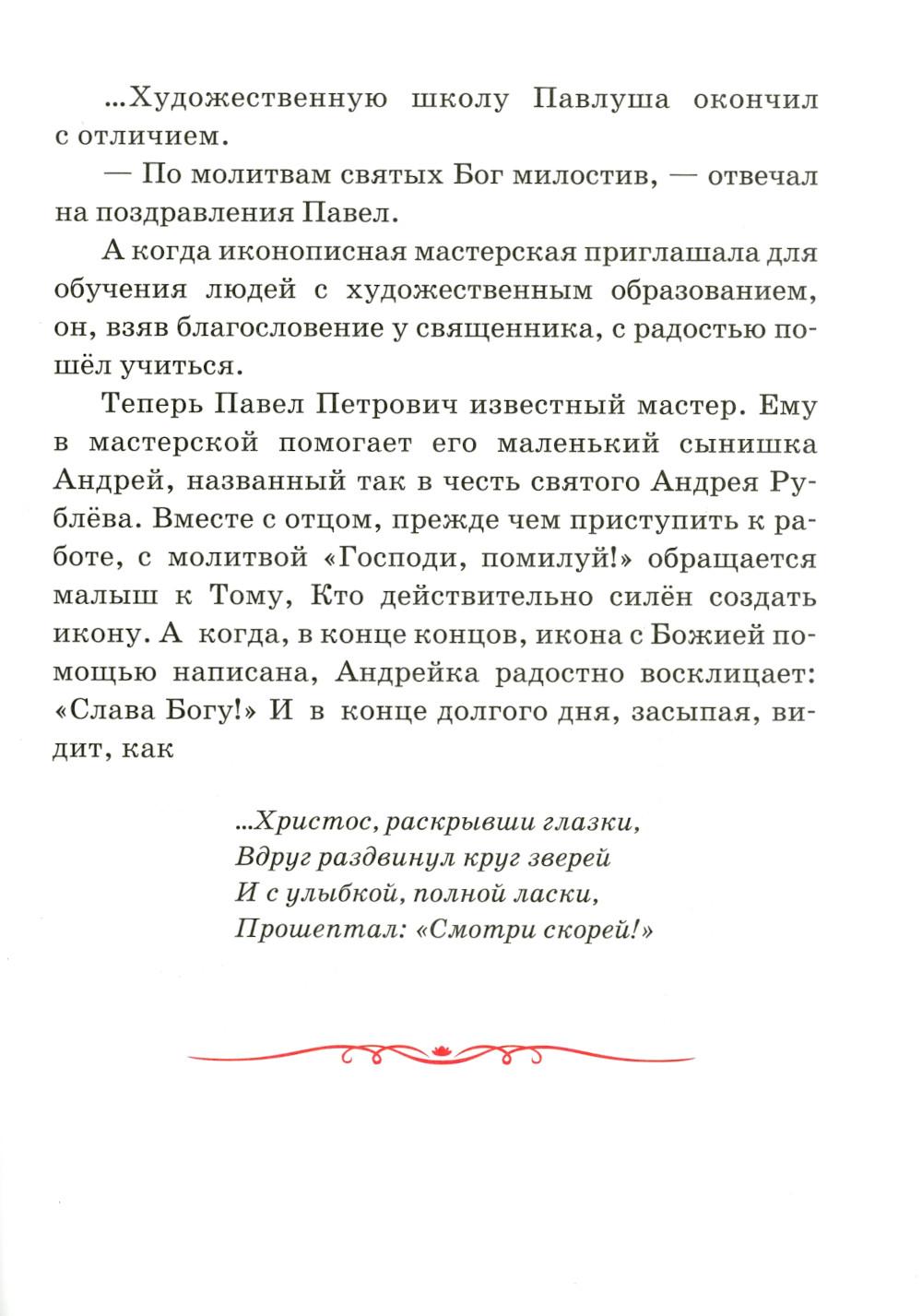 В сборник вошли литературные произведения классических и современных писателей для детей среднего и старшего школьного возраста. В них рассказывается о силе чистой и искренней молитвы к Богу, о том, как молитва укрепляет веру и надежду, учит любви и терпению, спасает от смерти и исцеляет от болезней.| Издательство | Белорусская Православная церковь |