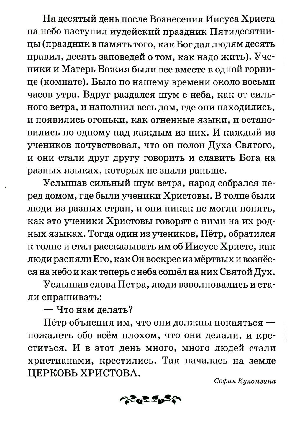 В сборник вошли литературные произведения для детей классических и современных писателей об одном из самых великих и радостных христианских праздников - Дне Святой Троицы, Пятидесятнице. Праздник Пятидесятницы - это день явления Духа Божия и христианской Церкви. Бог Отец положил ей основание в Ветхом Завете, Бог Сын создал Церковь, воплотившись на земле, Бог Дух Святой действует в ней. Поэтому праздник рождения христианской Церкви именуется Днём Святой Троицы.| Издательство | Захаров |