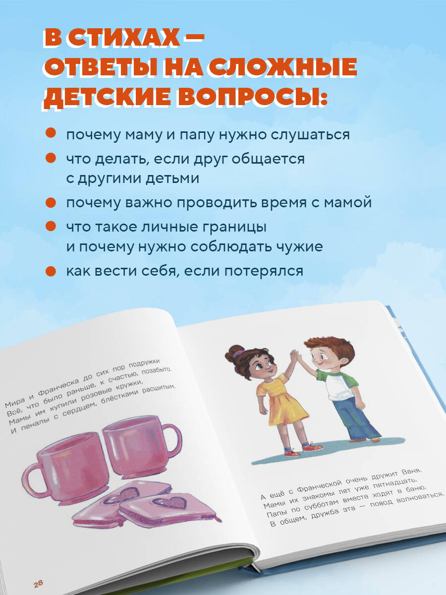 Стихи, однажды написанные Натальей Ремиш для своей дочери, стали сценарием к мультику «Просто о важном. Про Миру и Гошу», который собрал миллионы просмотров в Сети. Темы, волновавшие одну маму, оказались важными для многих родителей. Это продолжение известных стихов «Детям о важном» от писательницы, продюсера, журналиста и автора полумиллионного блога. На этот раз речь пойдет об эмоциях и актуальных темах для родителей и ребенка от 3 до 8 лет. Это не просто детские стихи, а возможность провести время вместе с ребенком, обратить внимание на важные темы и проговорить разные ситуации. Наталья Ремиш поможет донести до ребенка непростые, но очень нужные правила. Теперь Мира сталкивается со сложными ситуациями в своей маленькой жизни. У нее меняются друзья и появляется ревность. Возникают новые желания, а родители требуют ложиться спать в девять вечера. Она учится вести себя хорошо в гостях и уважать чужие границы. Ей нравится проводить время наедине с мамой, ведь для нее это очень важно. Мира узнает, что надо делать, если она потерялась, и как дать отпор подозрительным взрослым. В эту книгу вошли материалы поисково-спасательного отряда «Лиза Алерт». Вы найдете стихотворение, которое научит детей не вестись на манипуляции плохих взрослых, и послесловие для родителей о детской безопасности в лесу.| Издательство | ООО "Издательство "Эксмо" |
