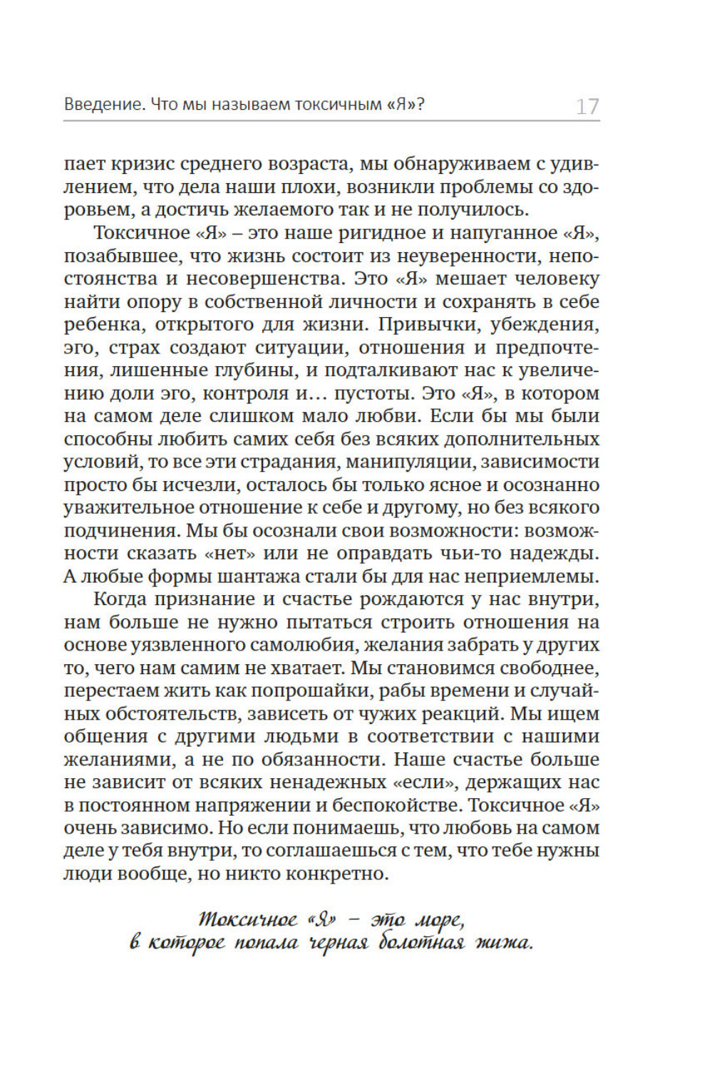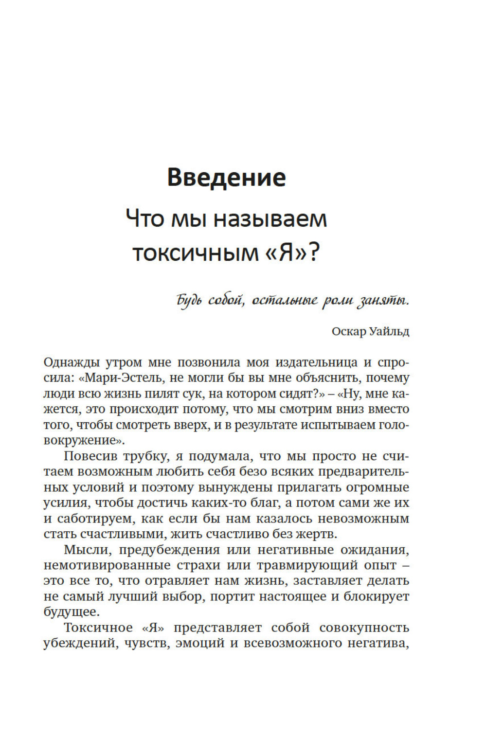 Самотоксичность - это набор убеждений, чувств, эмоций и всевозможного негатива, который не позволяет нам жить полной жизнью и реализовать себя в соответствии со своими планами и мечтами. Мы постоянно смотрим на себя сквозь негативный фильтр и действуем по чужим сценариям, которые нам не подходят. Мы вечно идем на компромиссы, ведущие в тупики. Токсичное «Я» питает наш гнев и душит творческое начало, застревает в прошлых страхах и обидах и препятствует развитию и росту. Книга психолога и психотерапевта Мари-Эстель Дюпон учит жить собственной жизнью, иметь индивидуальные представления о мире, любить себя без всяких условий. Примеры из практики, тесты и упражнения помогут вам остановить эмоциональное самоедство и запустить детоксикацию внутреннего «Я», осознанно управлять судьбой и карьерой, прислушаться к потребностям тела, понять свои эмоции и истинные желания.| Издательство | КоЛибри |