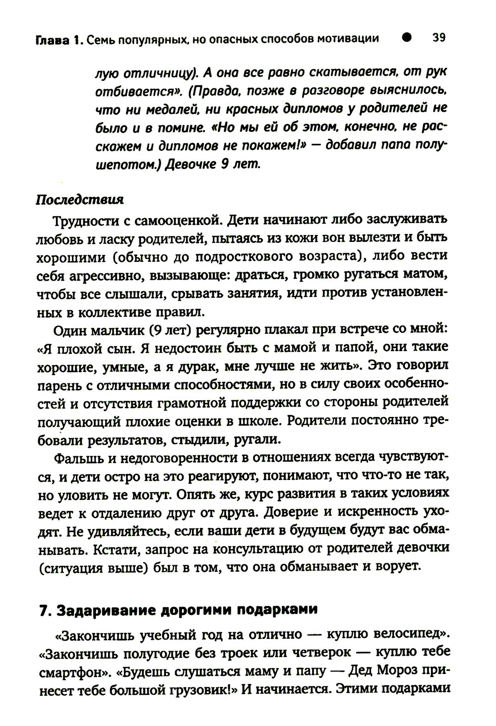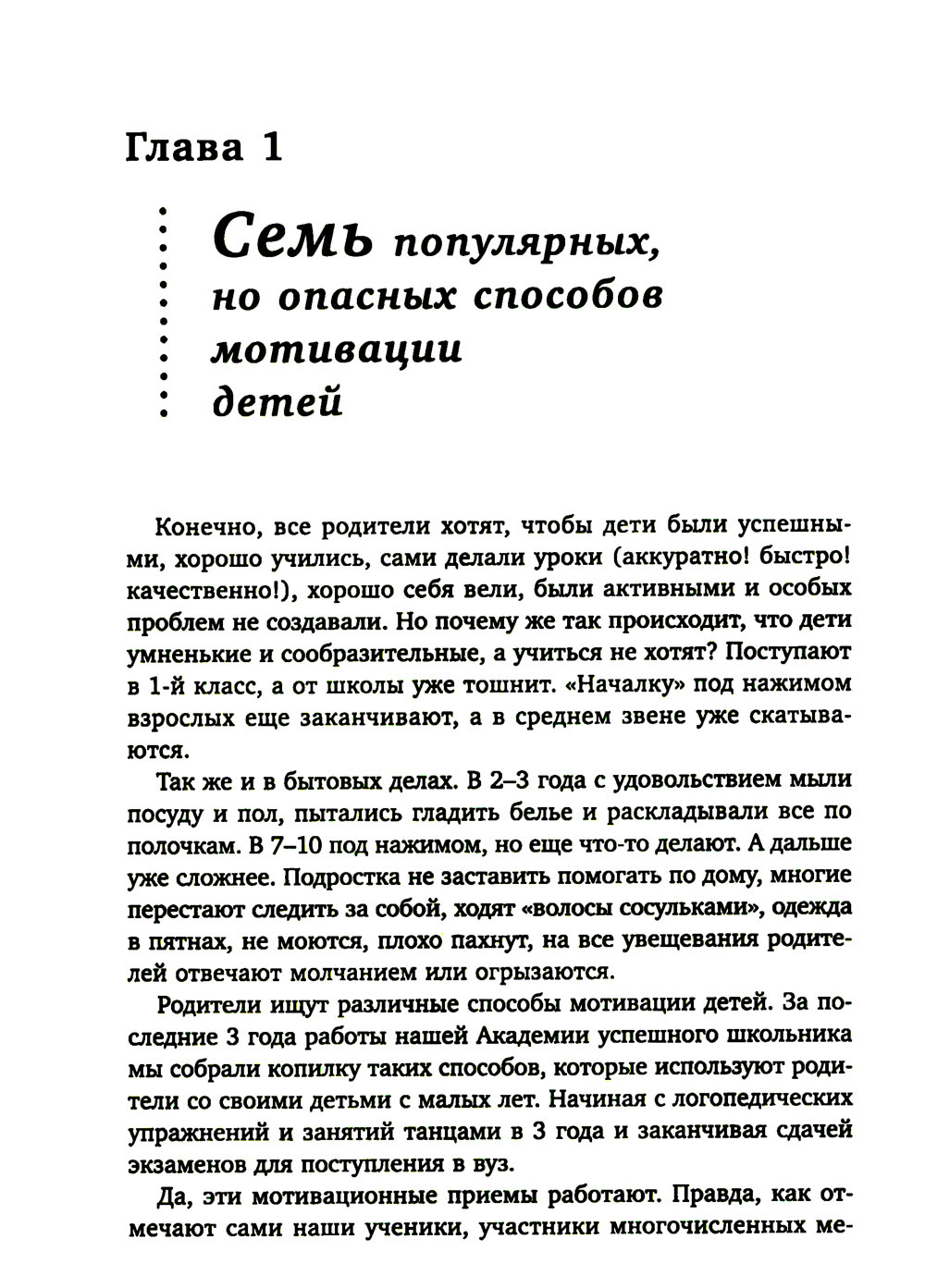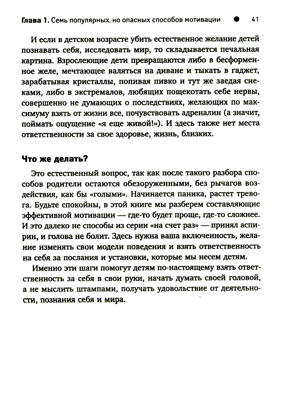 Вы устали от ежедневных затяжных «домашек» и хотите в это время заняться чем-то полезным по дому? Не можете оттащить ребенка от компьютера и убедить его стать более ответственным? Прочитали тонны книг по психологии воспитания, но в жизни все это не работает? Тогда наша практичная книга-тренинг для вас. Мы, Дмитрий и Наталья Козыревы. - супруги, родители 4 мальчишек. В своей работе мы много общаемся с детьми и родителями и видим уставших мам и пап, которые часто не знают, что делать со своими детьми, как еще их мотивировать. В этой книге-игре вы найдете конкретные рекомендации и пошаговые инструкции, собранные в систему. Шаг за шагом вы научитесь мотивировать детей без скандалов, запугиваний и наказаний. Поможете им сформировать адекватную самооценку. Научите преодолевать трудности, не бросая дела при первых же неудачах, а также справляться с ленью и скукой. Помимо теории здесь много конкретных упражнений, которые в системе дают головокружительные результаты, оздоравливают отношения, сплачивают семью, помогают мотивировать детей (и взрослых тоже) на учебу, развитие и домашние дела.| Издательство | Феникс |