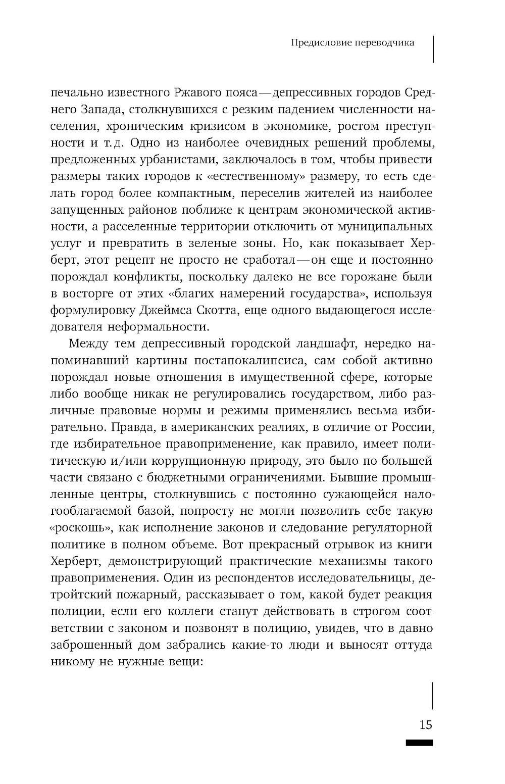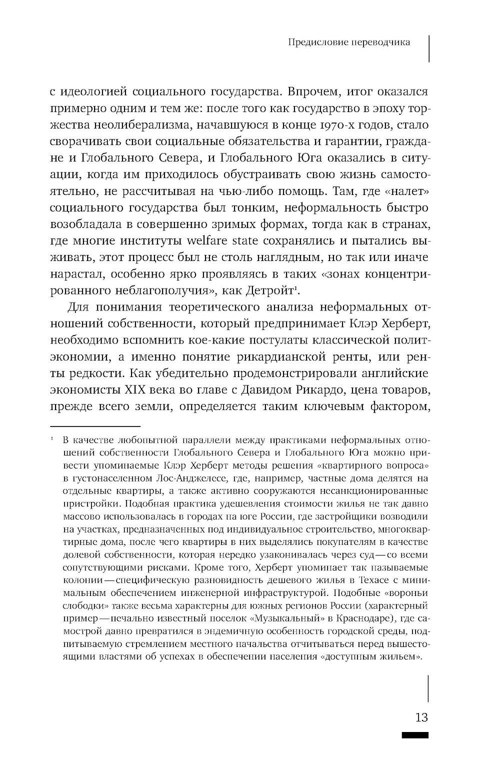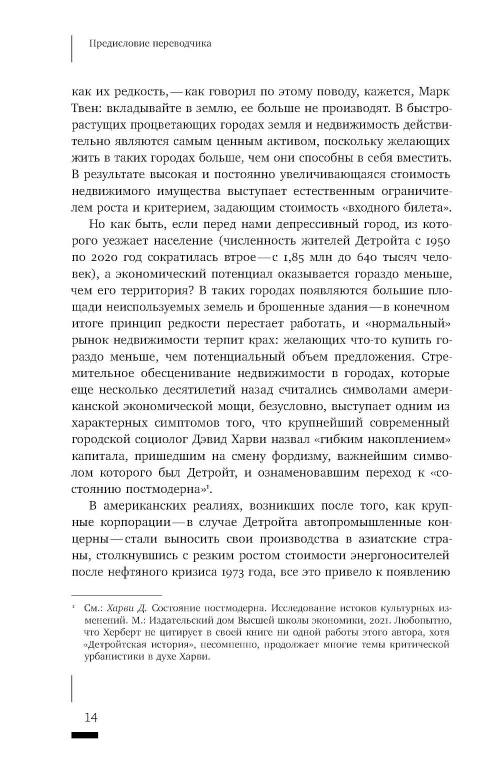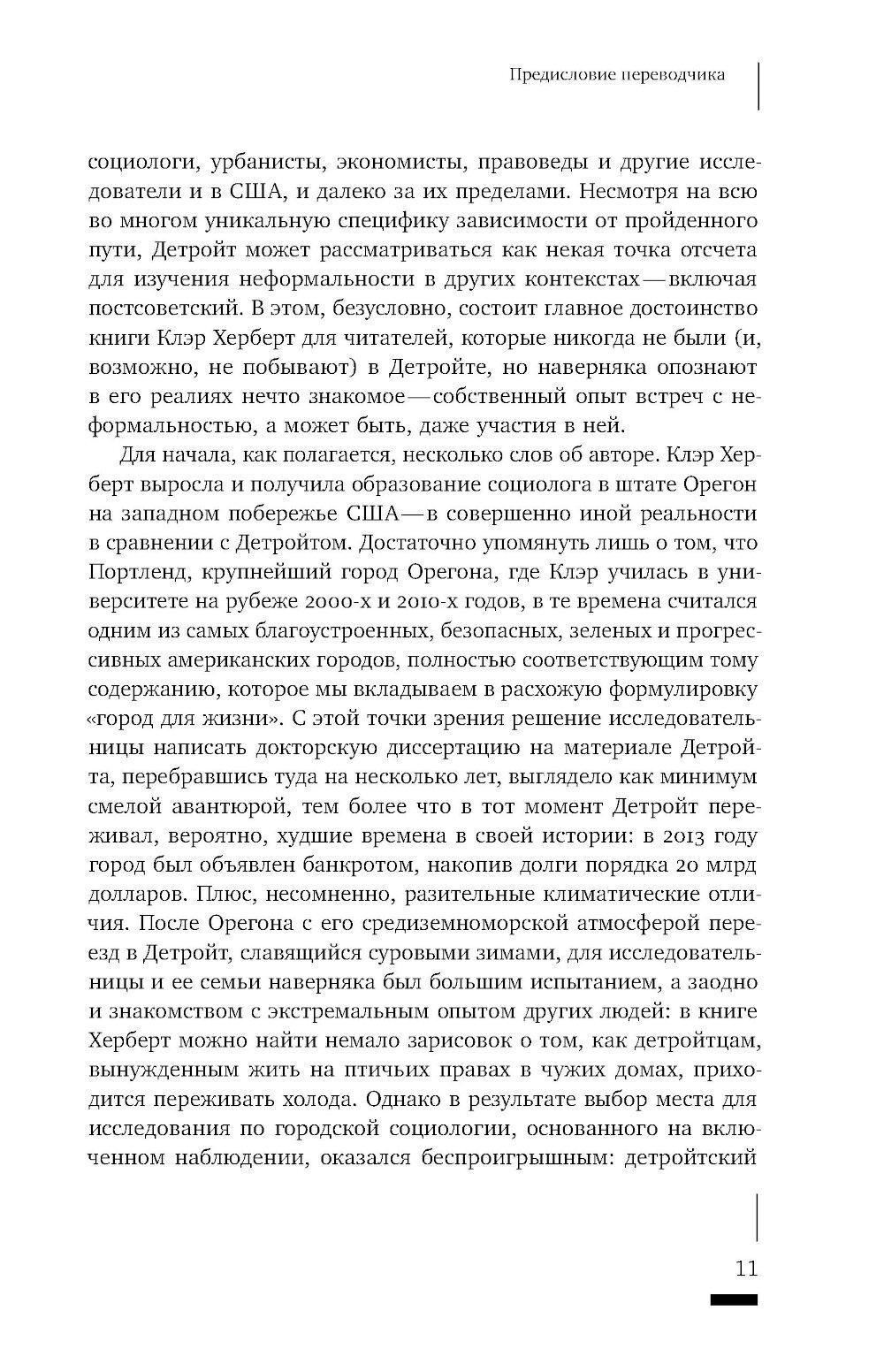 Случай Детройта - процветающего индустриального центра, превратившегося в «город-призрак» - иллюстрирует общемировую тенденцию перехода от «государства всеобщего благосостояния» к новой экономической ситуации. В этом новом мире, где отсутствуют социальные гарантии и стабильность, на первый план выходят неформальные связи. Им и посвящена книга антрополога Клэр Херберт, переехавшей с семьей в Детройт в момент, когда город находился в самом глубоком кризисе. Общаясь с местными жителями и анализируя их практики как включенный наблюдатель, автор открывает целый мир неформальных отношений с собственностью, не вписывающихся в традиционный образ «американской мечты». В надежде обрести крышу над головой детройтцы вынуждены действовать в обход законодательства и присваивать заброшенные дома, основываясь на этосе заботы - стремлении сделать жизнь в городе приемлемой без помощи городских властей. Стремясь увидеть ситуацию «упадка» или «депрессии» глазами самих горожан, Херберт обнаруживает приемы и стратегии, благодаря которым жизнь продолжается даже в ситуации, когда кажется, что основания социального порядка распались. Клэр Херберт - ассоциированный профессор социологии в Орегонском университете.| Издательство | Новое литературное обозрение |