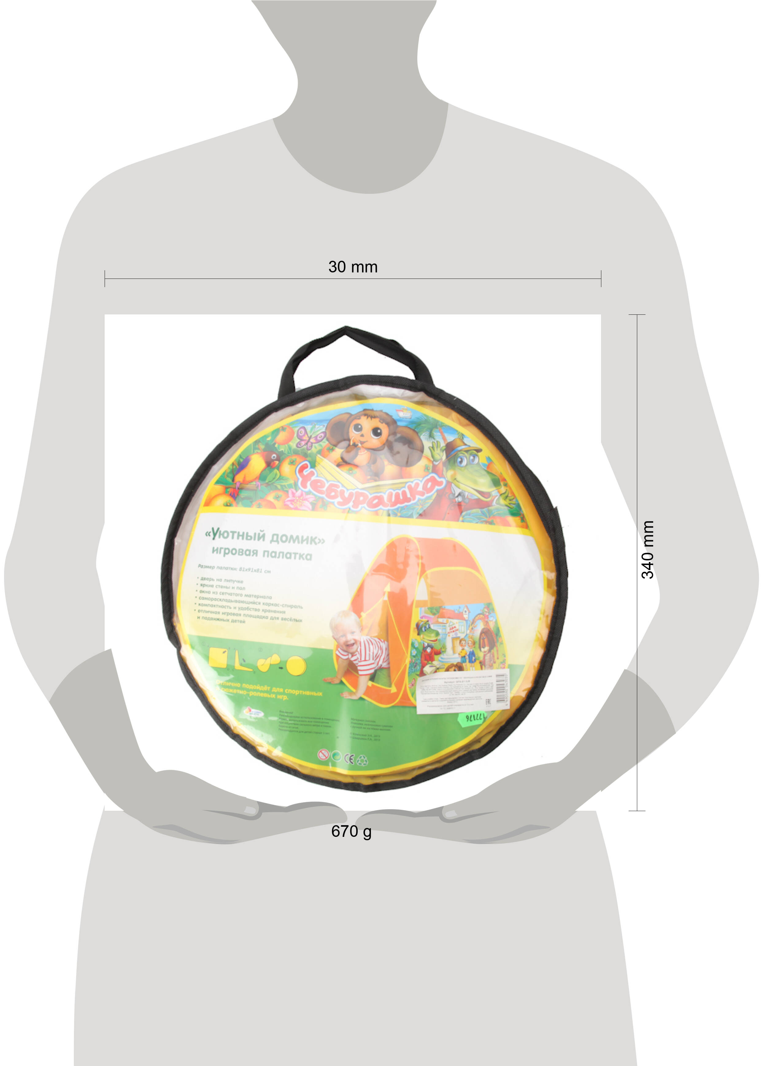 Удобная, красочная, а главное, практичная палатка! На ней изображены персонажи известного советского мультфильма "Чебурашка". Палатку можно использовать как дома, так и на природе. Она изготовлена из водонепроницаемого материала, грязь можно легко смыть влажной тряпкой. Сверху у палатки есть окошечко для вентиляции. А также есть полупрозрачное окно из сетчатого материала, благодаря которому можно контролировать игру ребенка, когда он находится внутри. Дверь в палатку закрепляется на липучку. Палатка легкая. У нее самораскладывающийся каркас-спираль. Ее очень просто складывать. В сложенном виде ее можно поместить в специальную компактную пластиковую сумку на молнии, которая идет в комплекте. Размер: 81х91х81 см.| Издательство | СИМБАТ ООО |