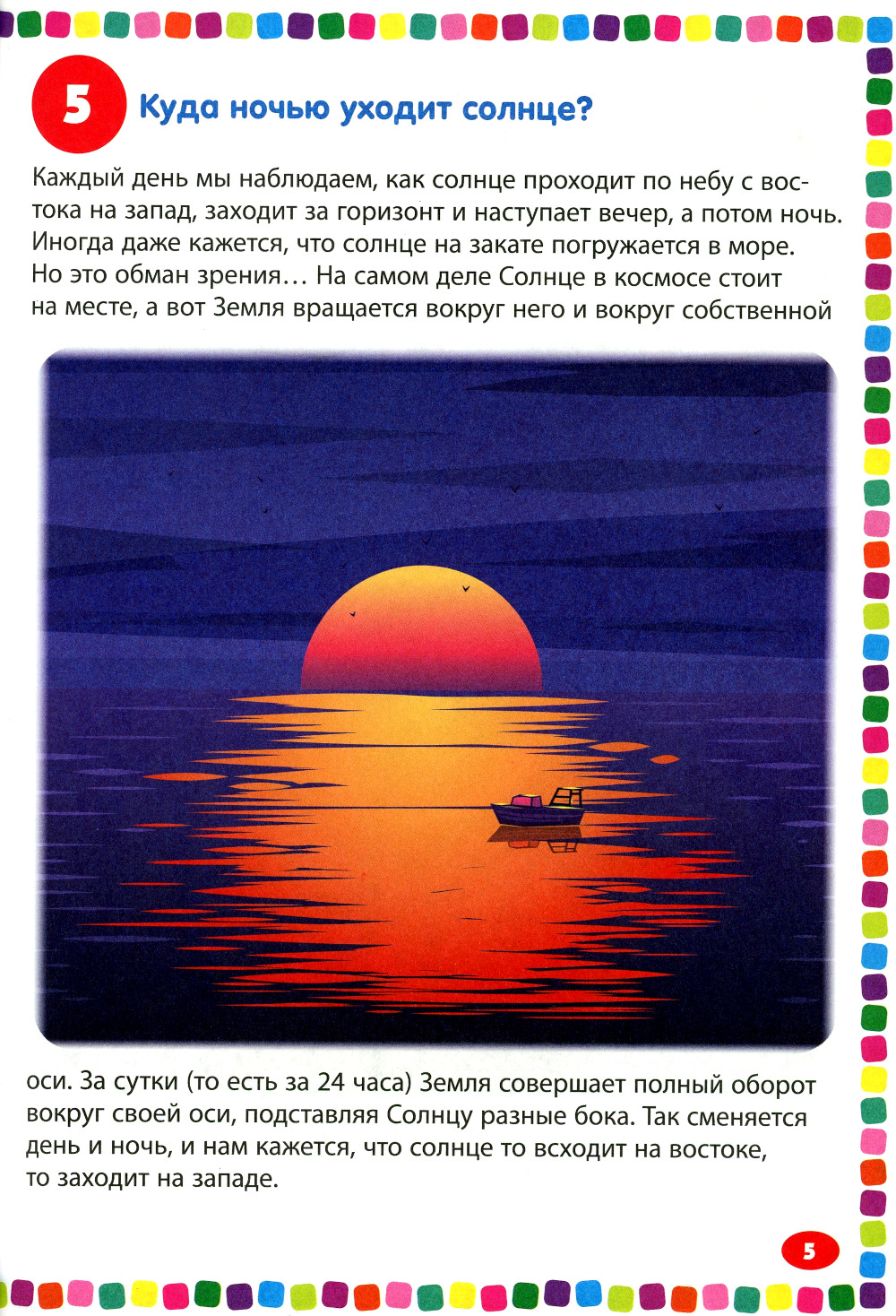 Уважаемые родители! С самого момента рождения ребёнок стремится познать окружающий мир. И вы, конечно, помните, как нетерпеливо ждали первых слов от своего малыша, но, когда он задаёт десятки вопросов за день, - взрослым становится не до шуток. Вам в помощь и сделана эта иллюстрированная энциклопедия, на страницах которой вы найдёте "лучшие" - понятные и краткие - ответы на самые разные вопросы ваших детей: - Что такое космос? - Куда ночью уходит солнце? - Какие бывают динозавры? - Где самое жаркое место на Земле? - Что такое шторм? - Какое растение самое пугливое? - Почему морковь оранжевая? - Для чего коту усы? - Почему поёт дрозд? - Где "живёт" сердце? - Сколько у нас органов чувств?Подробнее.| Издательство | Владис |