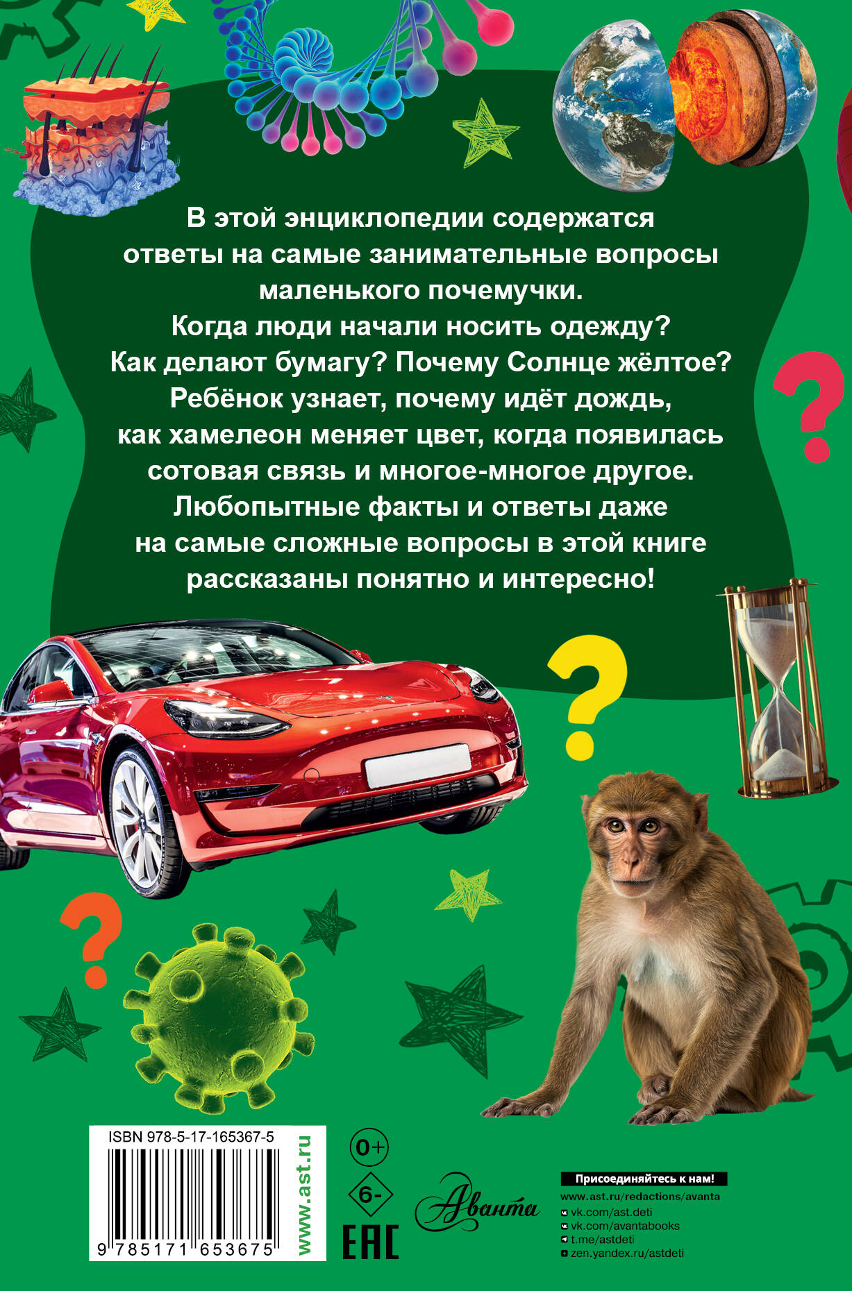 В этой энциклопедии содержатся ответы на самые занимательные вопросы маленького почемучки. Когда люди начали носить одежду? Как делают бумагу? Почему Солнце жёлтое? Ребёнок узнает, почему идёт дождь, как хамелеон меняет цвет, когда появилась сотовая связь и многое-многое другое. Любопытные факты и ответы даже на самые сложные вопросы в этой книге рассказаны понятно и интересно! Для среднего школьного возраста.| Издательство | Издательство "АСТ" |