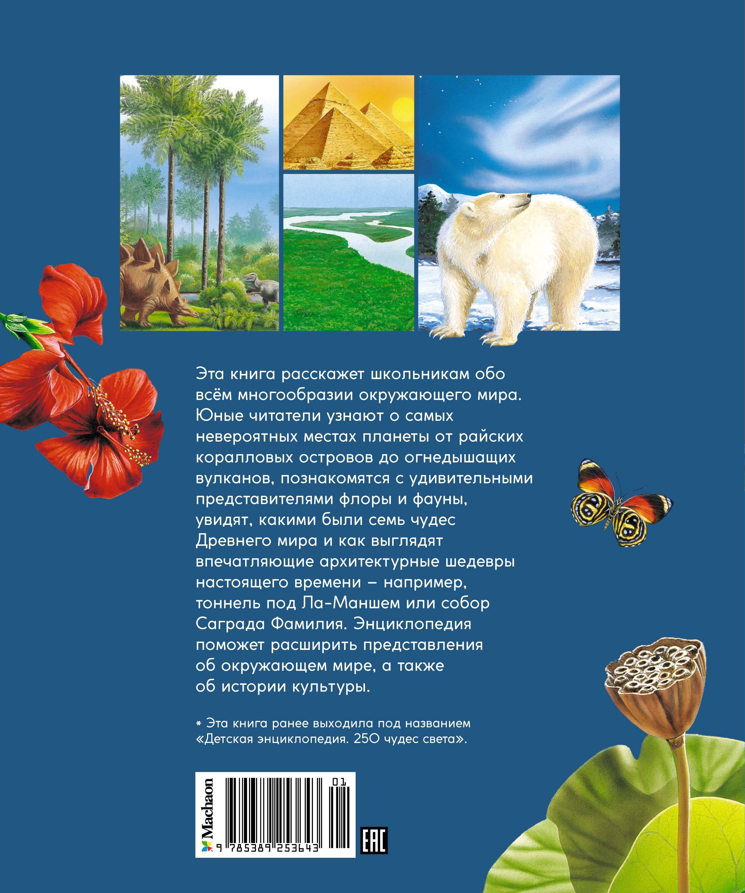 Эта книга расскажет школьникам обо всём многообразии окружающего мира. Юные читатели узнают о самых невероятных местах планеты от райских коралловых островов до огнедышащих вулканов, познакомятся с удивительными представителями флоры и фауны, увидят, какими были семь чудес Древнего мира и как выглядят впечатляющие архитектурные шедевры настоящего времени - например, тоннель под Ла-Маншем или собор Саграда Фамилия. Энциклопедия поможет расширить представления об окружающем мире, а также об истории культуры.| Издательство | Азбука-Аттикус Издат.группа ООО |
