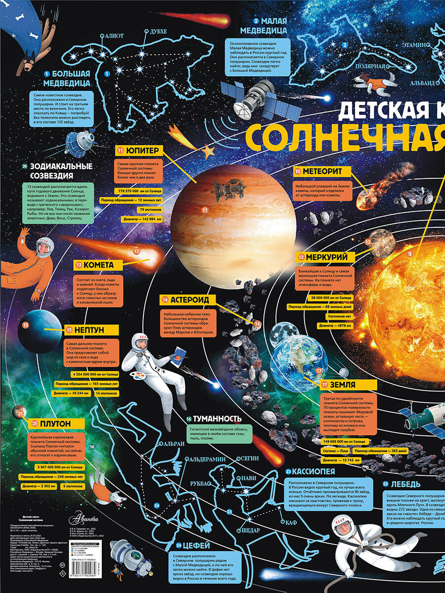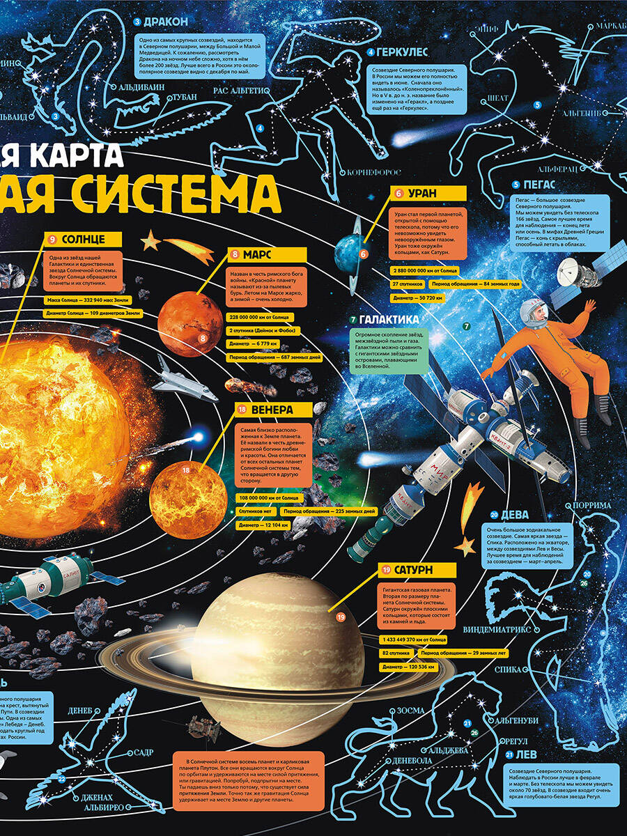 Карта представляет ребятам планеты Солнечной системы. О каждой планете даны основные сведения, которые помогут детям в изучении Вселенной и космоса в школе и дома. Для младшего и среднего школьного возраста.| Издательство | Издательство "АСТ" |