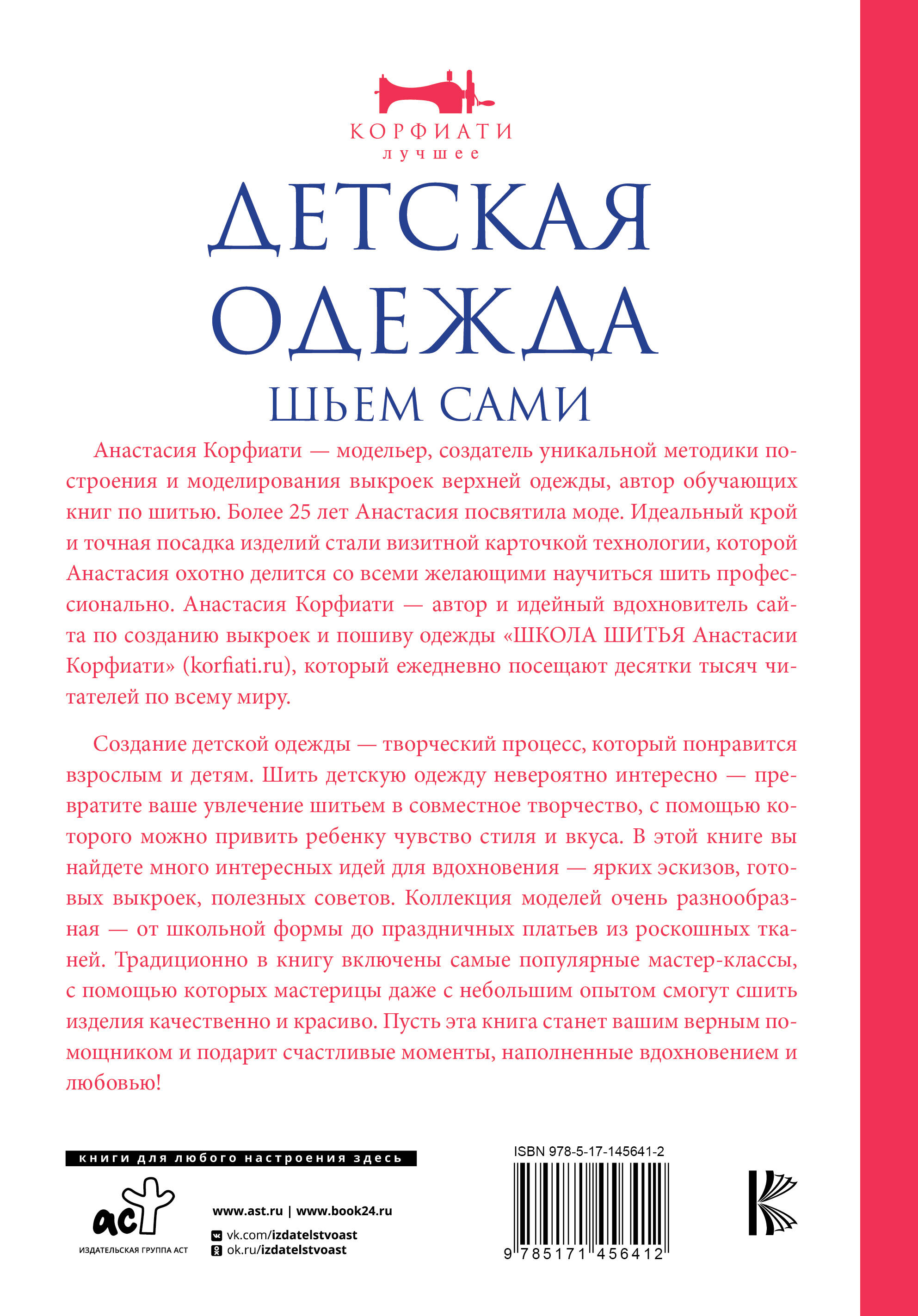 Чтобы создать чудо своими руками, вам не нужна волшебная палочка. Нужны иголка и книга Анастасии Корфиати «Детская одежда. Шьём сами». Автор посвятила моде больше четверти века и умеет рассказывать о создании одежды легко, ее мастер-классы помогут даже тем, кто никогда не брался за выкройку. Шить - это весело и интересно, и к тому же, это отличный способ провести время с ребенком. Сшейте что-нибудь вместе, и вы будете особенно любить эту вещь!| Издательство | АСТ |