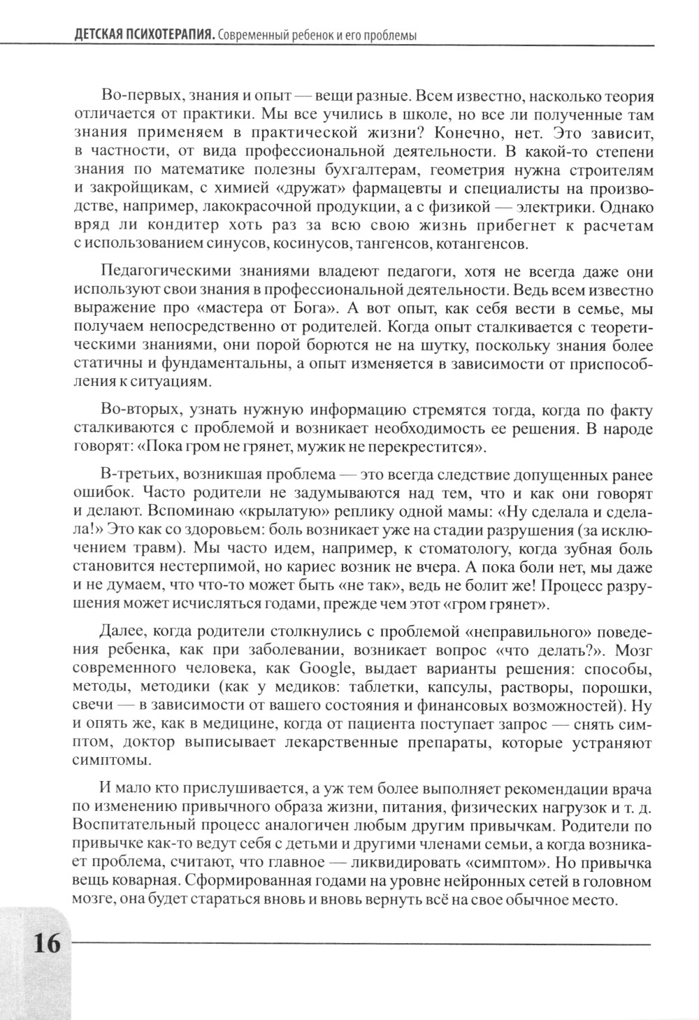 Современные дети - это люди другой эпохи. С одной стороны, они мгновенно схватывают информацию, демонстрируют уникальные способности, с другой - у них резко обострились проблемы, связанные с нарушениями поведения, сложностями обучения в школе, мотивацией, самооценкой и общением с окружающими, а также здоровьем, соматическим и психическим. Если вы задаетесь вопросом « Что я делаю не так, раз у моего ребенка это?..» - значит, эта книга для вас. Она кардинально изменит ваш взгляд на ребенка и его проблемы и станет настольной на долгие годы от его рождения до взросления, потому что поможет услышать «крик души» ребенка в замкнутости и агрессии, истериках и непослушании, болезни и саботаже... А главное, поможет предотвратить беду, так как построена на описании реальных современных историй тех, кто обращался за помощью, и содержит алгоритмы решения проблем этих детей. Е.Р. Разумовская - практикующий клинический психолог и детский нейропсихолог, основатель авторской школы в Санкт-Петербурге, с опытом практической работы более 30 лет, разработчик собственной методики. Автор строит повествование так: дает информацию о самой проблеме, приводит пример из реальной жизни, представляет анализ ситуации, а затем раскрывает алгоритм психотерапии в каждом описываемом случае. Так что эта книга станет не только кладезем знаний для всех родителей, независимо от возраста их ребенка, но и настольным пособием для специалистов, которые работают непосредственно с детьми, - психологов, воспитателей, педагогов, педиатров, тьюторов, сотрудников детских коррекционных центров. Написанная легким и доступным языком, книга читается на одном дыхании.| Издательство | Наука и техника |