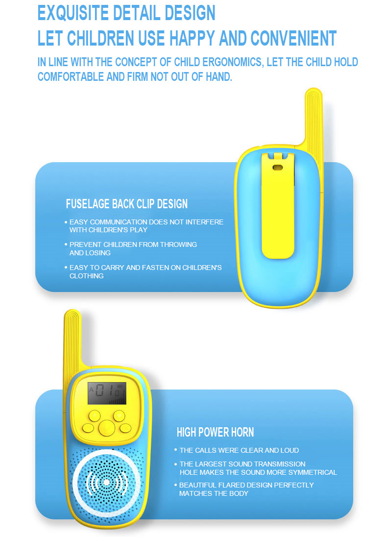 Детская рация Fusion Clear Sound с радиусом действия 1-3 км / светодиодный фонарик / аккумулятор (сине-желтый)