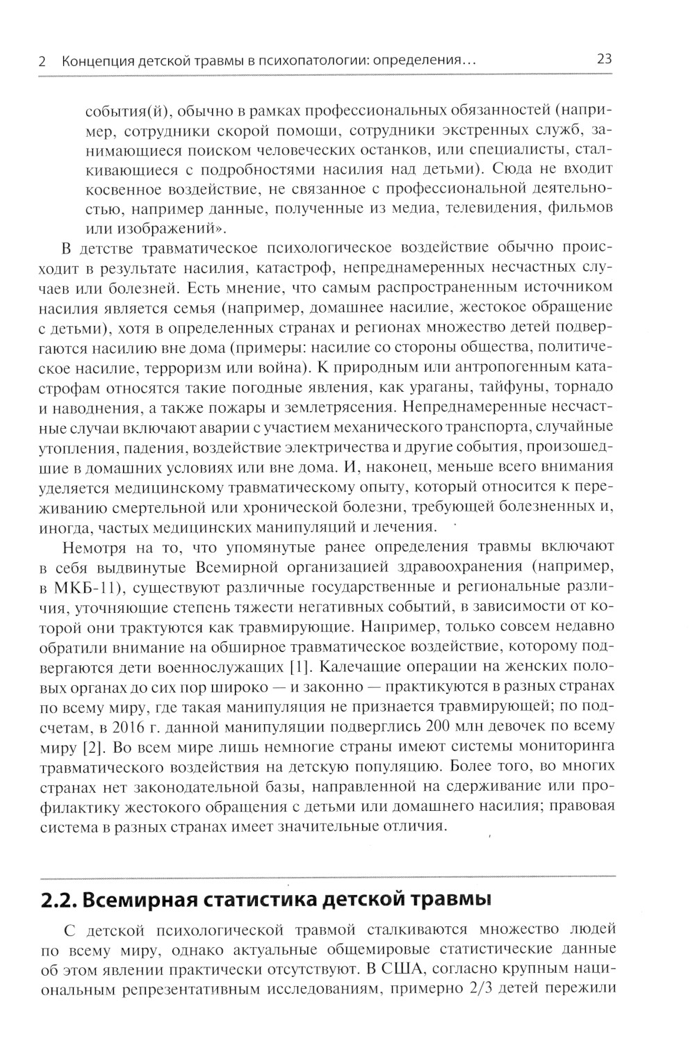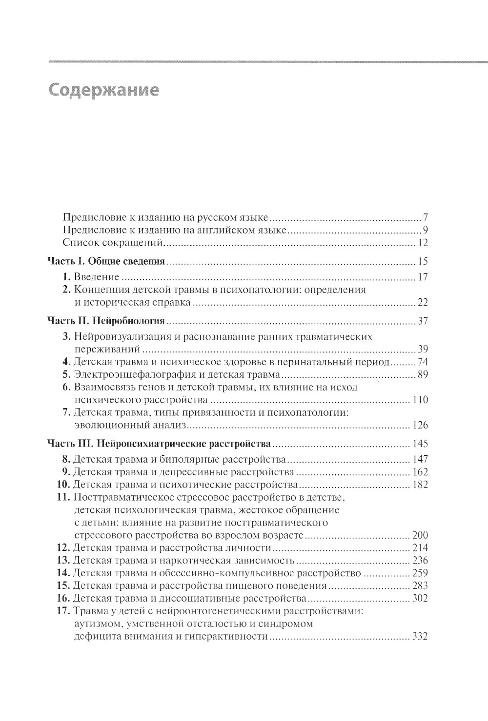 В книге представлен исчерпывающий исторический очерк по изучению проблемы детской психологической травмы и ее роли в развитии психических заболеваний, а также приведены данные, касающиеся современных нейробиологических маркеров: нейровизуализационные находки, электроэнцефалографические изменения, взаимосвязь этих данных с результатами генетических и эволюционных исследований. Оценивается роль детских травмирующих событий в развитии отдельных эндогенных психических заболеваний, а также посттравматического стрессового расстройства, расстройств пищевого поведения, обсессивно-компульсивного расстройства, личностных и диссоциативных нарушений. Отдельно обсуждаются психотерапевтические и психофармакологические подходы к пациентам, пережившим детскую травму, у которых развились психические нарушения. Книга вызовет несомненный интерес прежде всего у детских психиатров и психотерапевтов, а также специалистов, занимающихся биологической психиатрией.| Издательство | ГЭОТАР-Медиа |