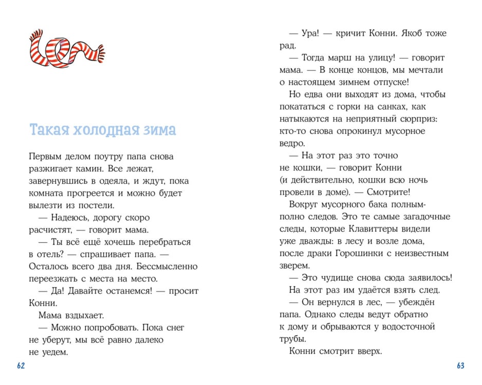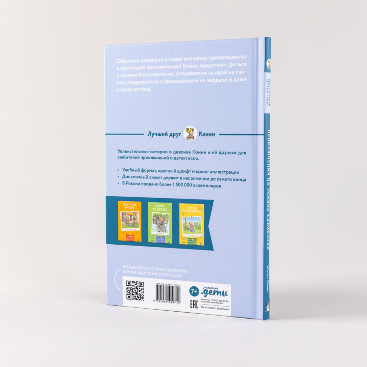 В этой истории Конни с семьей отправляется кататься на горных лыжах, но застревает в сильном снегопаде. Каникулы становятся самым настоящим приключением! Им предстоит греться у камина без отопления, отправиться за едой на санках, подружиться с привидением на чердаке и даже спасти котика.