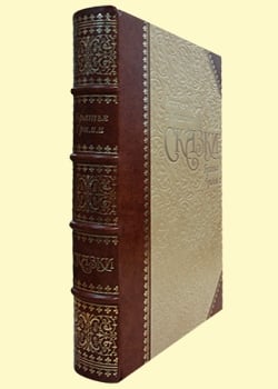 Подарочное издание. Классический французский кожаный переплет, разные виды тиснения, обрез торшонированный и окрашенный, подарочный футляр, ограниченный тираж.