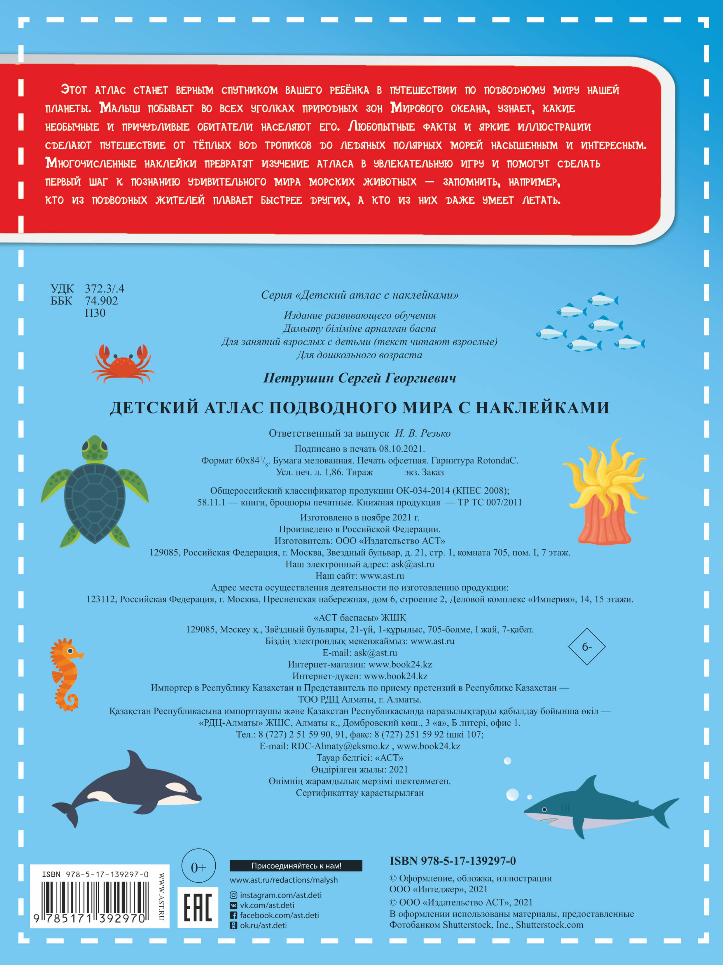 Этот атлас станет первым путеводителем вашего ребёнка в увлекательном путешествии по Мировому океану нашей планеты и знакомстве с его обитателями. С помощью нашей книги малыш побывает во всех, даже самых отдалённых уголках света, узнает, на какие природные зоны делится подводное царство и какие животные населяют каждую из них. Любопытные факты и яркие картинки сделают это путешествие увлекательным и интересным. А многочисленные наклейки превратят изучение атласа в занимательную игру. Вперёд - приключения ждут самых любознательных!| Издательство | ИЗДАТЕЛЬСТВО "АСТ" |