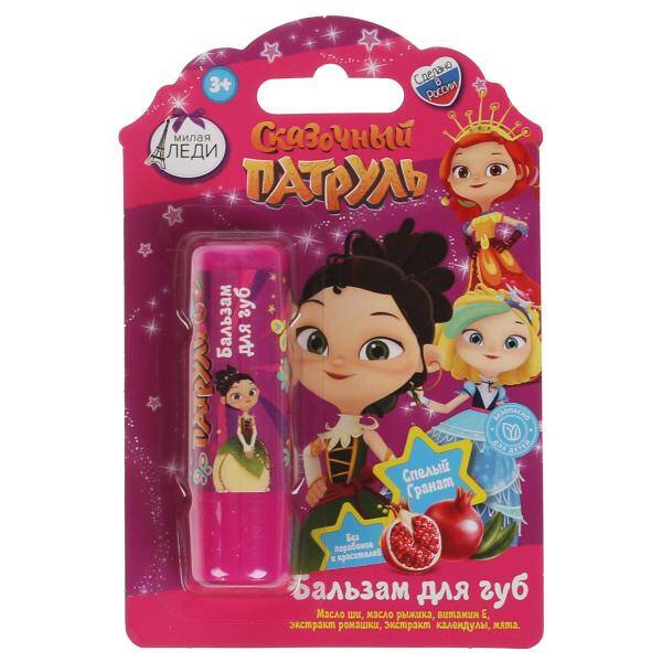 Аннотация: Детский бальзам для губ СКАЗОЧНЫЙ ПАТРУЛЬ с ароматом"спелый гранат" 4,2г бл МИЛАЯ ЛЕДИ в кор.40шт