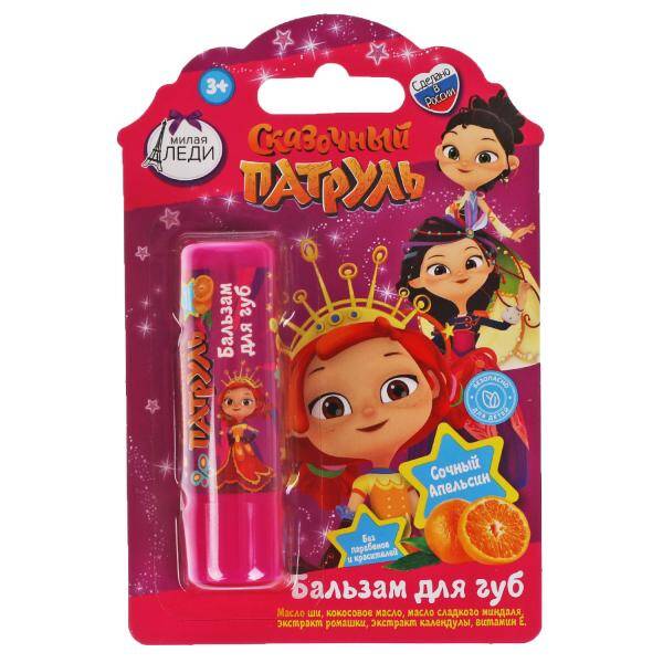 Аннотация: Детский бальзам для губ СКАЗОЧНЫЙ ПАТРУЛЬ с аромато"сочный апельсин"4,2г бл МИЛАЯ ЛЕДИ в кор.40шт