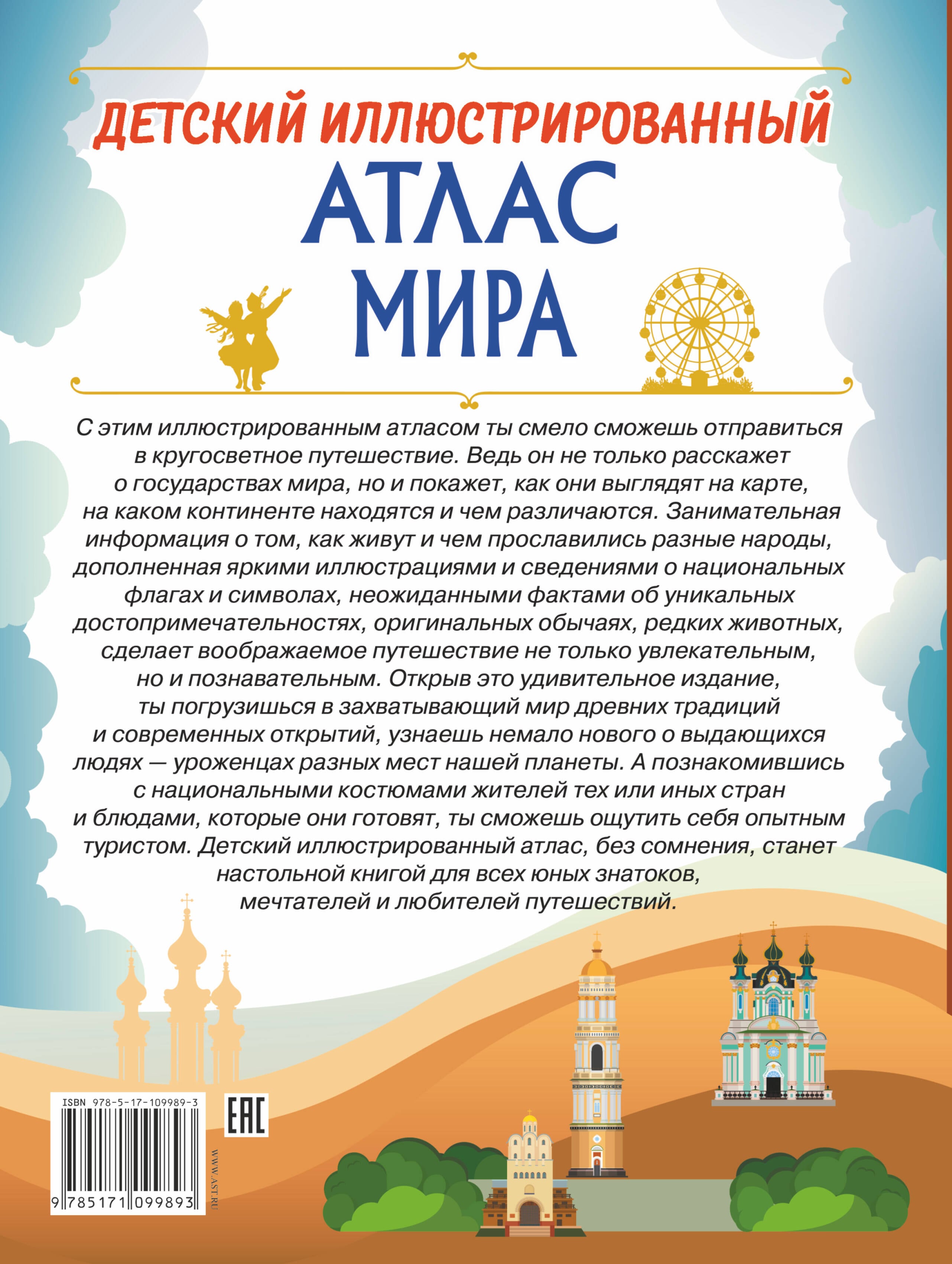 С этим иллюстрированным атласом ты смело сможешь отправиться в кругосветное путешествие. Ведь он не только расскажет о государствах мира, но и покажет, как они выглядят на карте, на каком континенте находятся и чем различаются. Занимательная информация о том, как живут и чем прославились разные народы, дополненная яркими иллюстрациями и сведениями о национальных флагах и символах, неожиданными фактами об уникальных достопримечательностях, оригинальных обычаях, редких животных, сделает воображаемое путешествие не только увлекательным, но и познавательным. Открыв это удивительное издание, ты погрузишься в захватывающий мир древних традиций и современных открытий, узнаешь немало нового о выдающихся людях - уроженцах разных мест нашей планеты. А познакомившись с национальными костюмами жителей тех или иных стран и блюдами, которые они готовят, ты сможешь ощутить себя опытным туристом. Детский иллюстрированный атлас, без сомнения, станет настольной книгой для всех юных знатоков, мечтателей и любителей путешествий.| Издательство | Издательство "АСТ" |