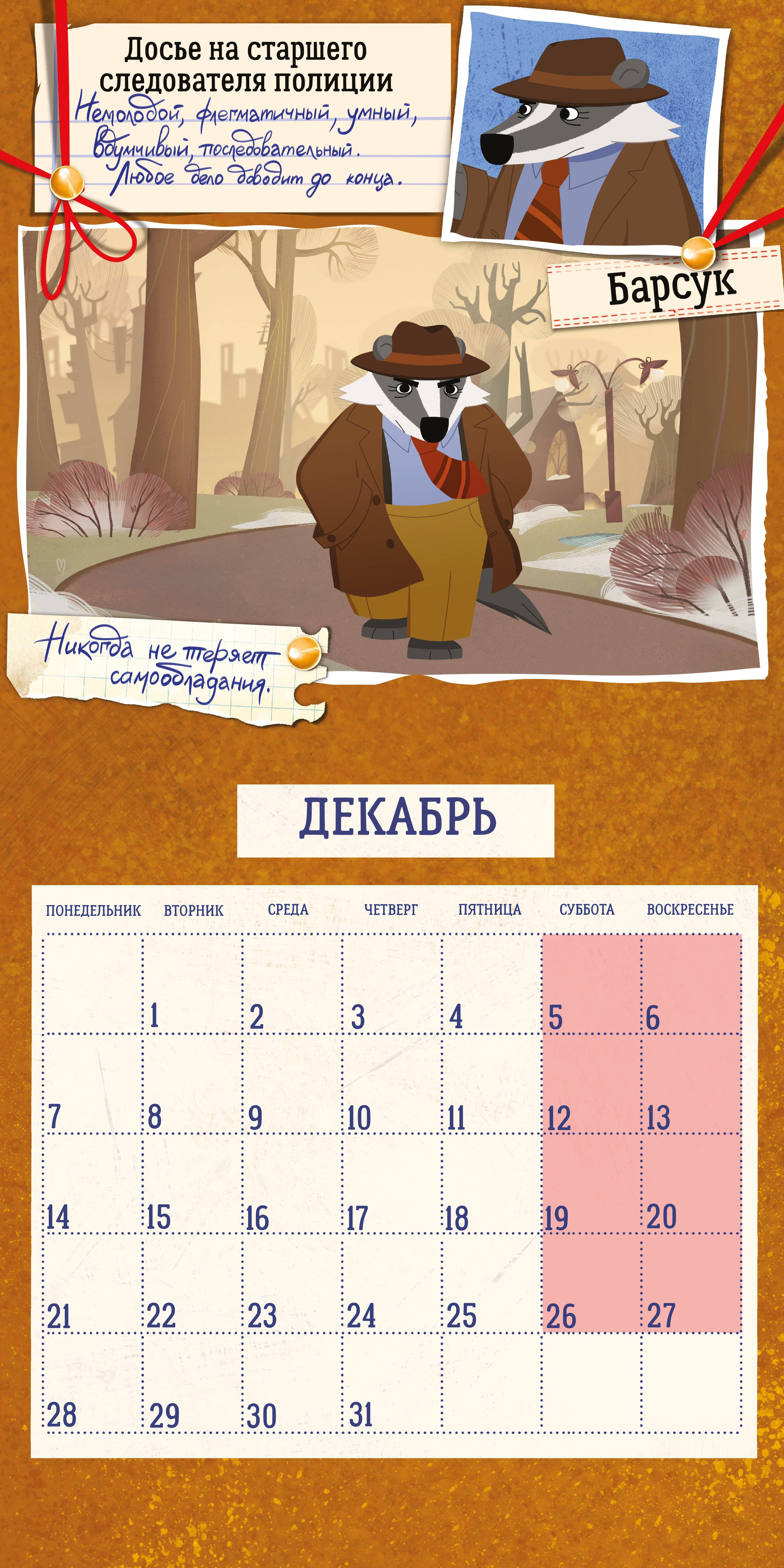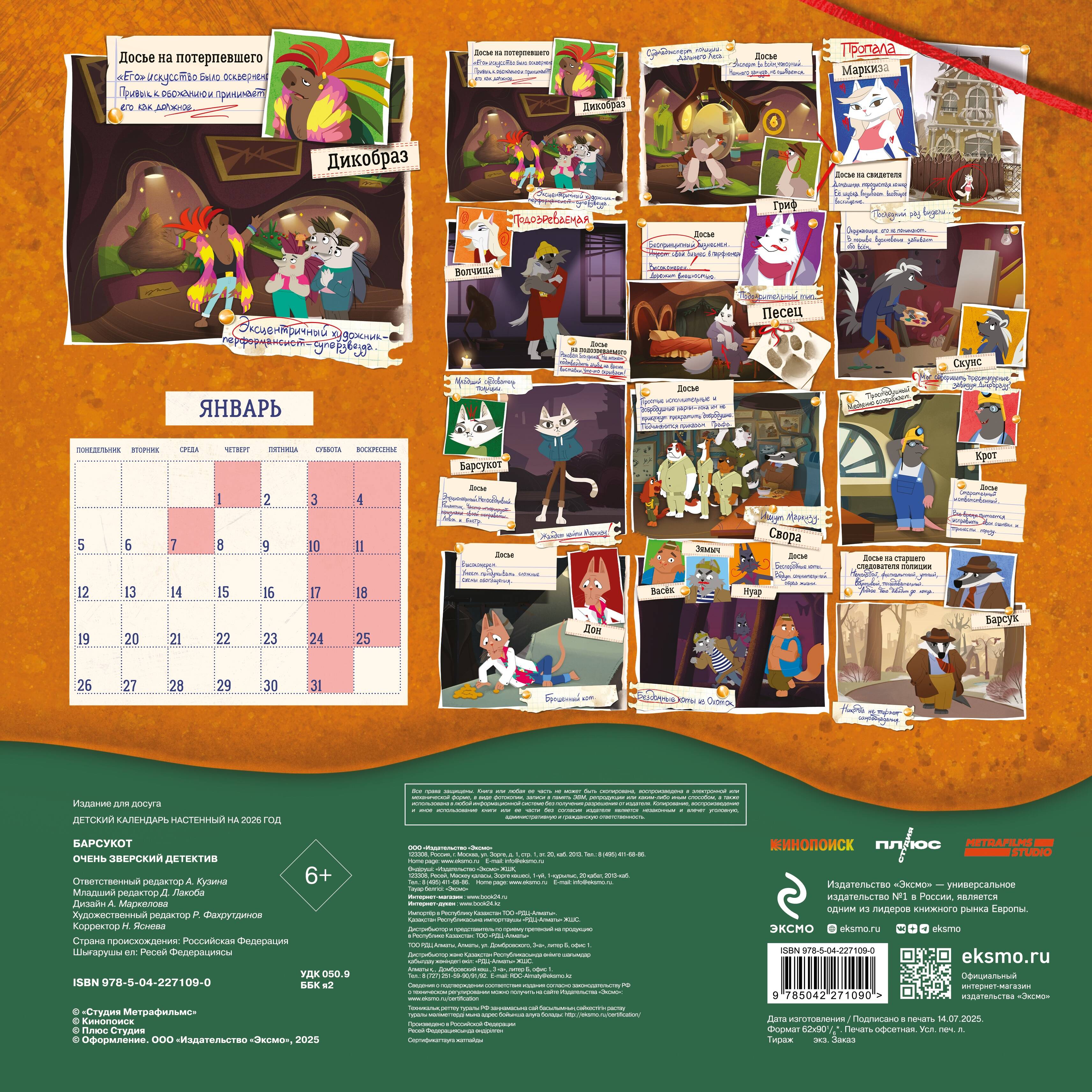 Аннотация: Детский календарь настенный на 2026 год. Барсукот. Очень зверский детектив (290х290 мм)