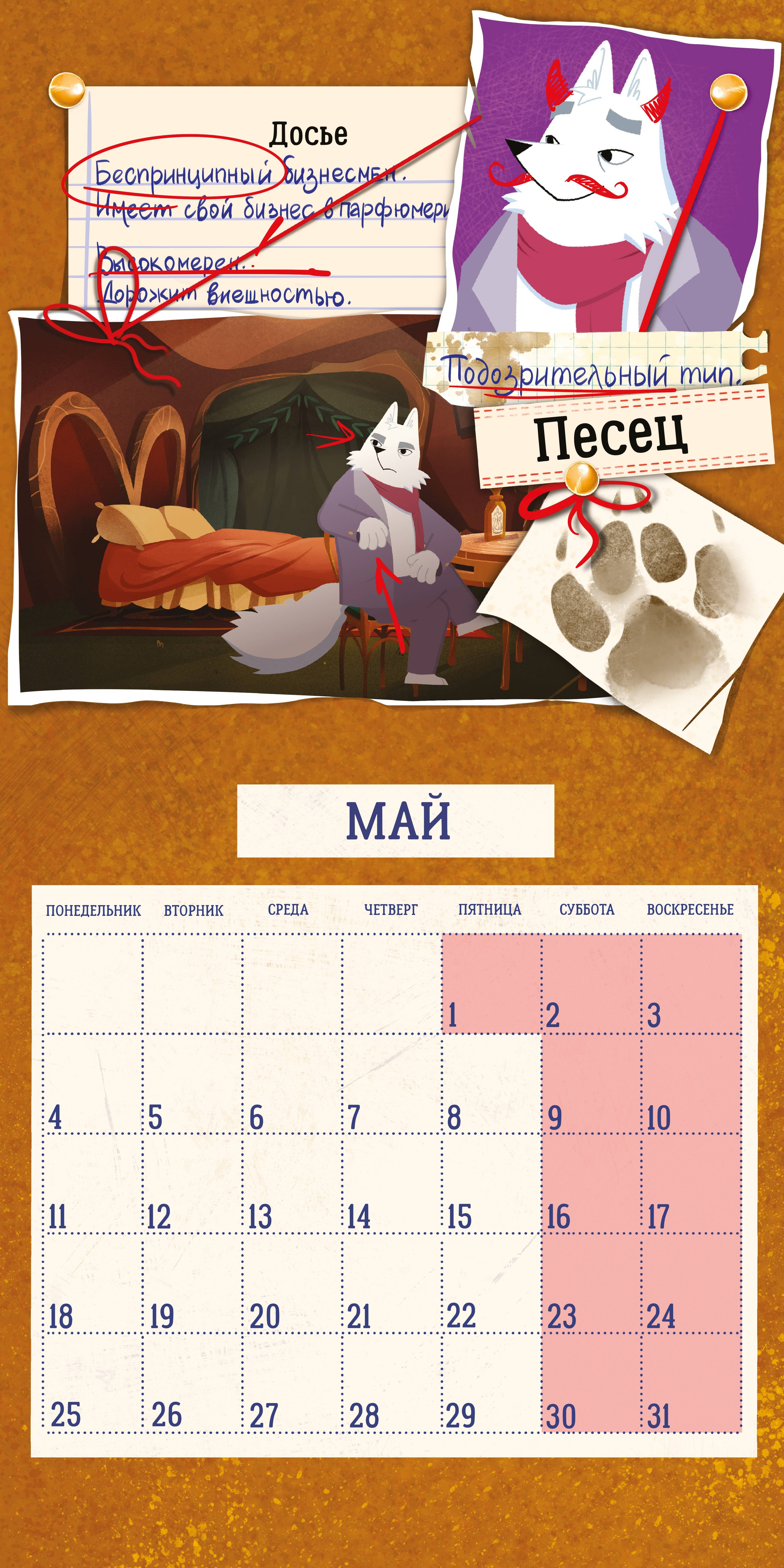 О календаре: «Календарь настенный на 2026 год. Барсукот. Очень зверский детектив» - полезный подарок вашему ребенку на Новый год. Вместе с Барсукотом он запомнит месяцы, дни недели и научится следить за расписанием. А также проведет расследование, собрав досье на каждого подозреваемого в похищении Маркизы. Названия дней недели в календарной сетке написаны полностью, чтобы ваш ребенок смог быстрее их запомнить. Материалы: Наши детские настенные календари отличаются высоким качеством полиграфии. Календари напечатаны на плотной мелованной матовой бумаге: обложка - бумага мелованная 200 г, блок - бумага мелованная 150 г. Теперь можно не беспокоиться, что первый лист порвется под тяжестью всего календаря. В каждый экземпляр календаря вложен гофрокартон, чтобы тот не помялся при транспортировке. Также календарь целлофанируется в плотный пакет с европодвесом. В календаре есть отверстие диаметром 5 мм для крепления на стене. На каждом листе месяца указано: - название месяца; - государственные праздники и выходные дни; - на последнем развороте есть мини-календарь на 2027 год. Технические параметры: - Размеры календаря в развернутом виде 29х58 см (в упакованном - 29х29 см). - Тип календаря - настенный перекидной. - Год - 2026. - Календарная сетка - с разбивкой по месяцам. - Вид скрепления - скрепка. - Ширина - 29 см. - Высота - 29 см. - Обложка - мелованная бумага 200 г/м2. - Внутренний блок - мелованная бумага 150 г/м2. - Подложка - плотный гофрокартон для поддержания формы. - Индивидуальная упаковка в плотный целлофановый пакет. Соберите всю коллекцию с Барсукотом: - «Скетчбук. Барсукот. Очень зверский детектив» (А5, 40 л., вертикальный на пружине) - «Активитибук. Барсукот. Очень зверский детектив» - Набор «Зверский детектив» (с шоппером) - «Барсукот. Очень зверский детектив. Набор значков» - «Детский календарь настенный на 2026 год. Барсукот. Очень зверский детектив» (290х290 мм)| Издательство | ООО "Издательство "Эксмо" |