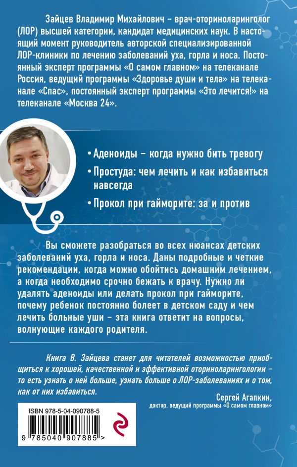Книга доктора Зайцева поможет разобраться во всех нюансах детских заболеваний уха, горла и носа. Даны подробные и четкие рекомендации, когда можно обойтись домашним лечением, а когда - необходимо срочно бежать к врачу. Нужно ли удалять аденоиды или делать прокол при гайморите, почему ребенок постоянно болеет в детском саду и чем лечить больные уши - эта книга ответит на вопросы, волнующие каждого родителя.