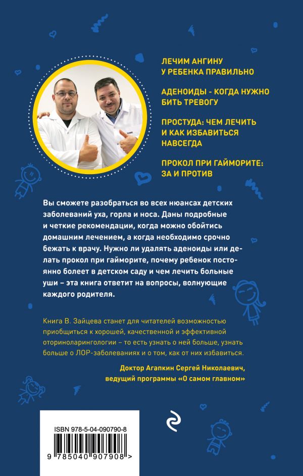 Книга доктора Зайцева поможет разобраться во всех нюансах детских заболеваний уха, горла и носа. Даны подробные и четкие рекомендации, когда можно обойтись домашним лечением, а когда - необходимо срочно бежать к врачу. Нужно ли удалять аденоиды или делать прокол при гайморите, почему ребенок постоянно болеет в детском саду и чем лечить больные уши - эта книга ответит на вопросы, волнующие каждого родителя.