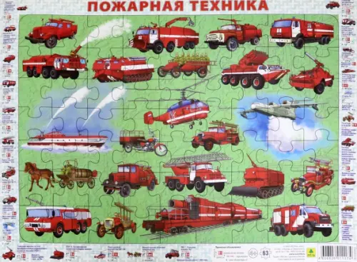 Детский пазл на подложке. Отечественная пожарная техника, 63 элемента