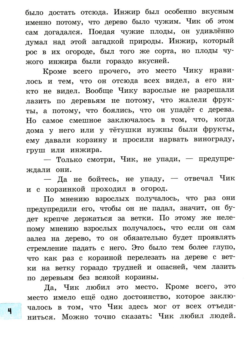Рассказы Фазиля Искандера о Чике - это настоящий праздник возвращения в детство! Каждый день здесь полон захватывающих приключений и важных открытий, вокруг так много верных друзей, а событие, незначительное для взрослых, может полностью изменить мир. Чик - обычный школьник, но у него есть удивительный талант - видеть вокруг смешное и замечать то, чего не замечают другие. Вместе с ним и читатели включаются в эту игру и смотрят вокруг новым взглядом! Впервые рассказы про Чика выходят с цветными иллюстрациями замечательного художника Виктора Чижикова.| Издательство | Изд. Лабиринт Пресс |