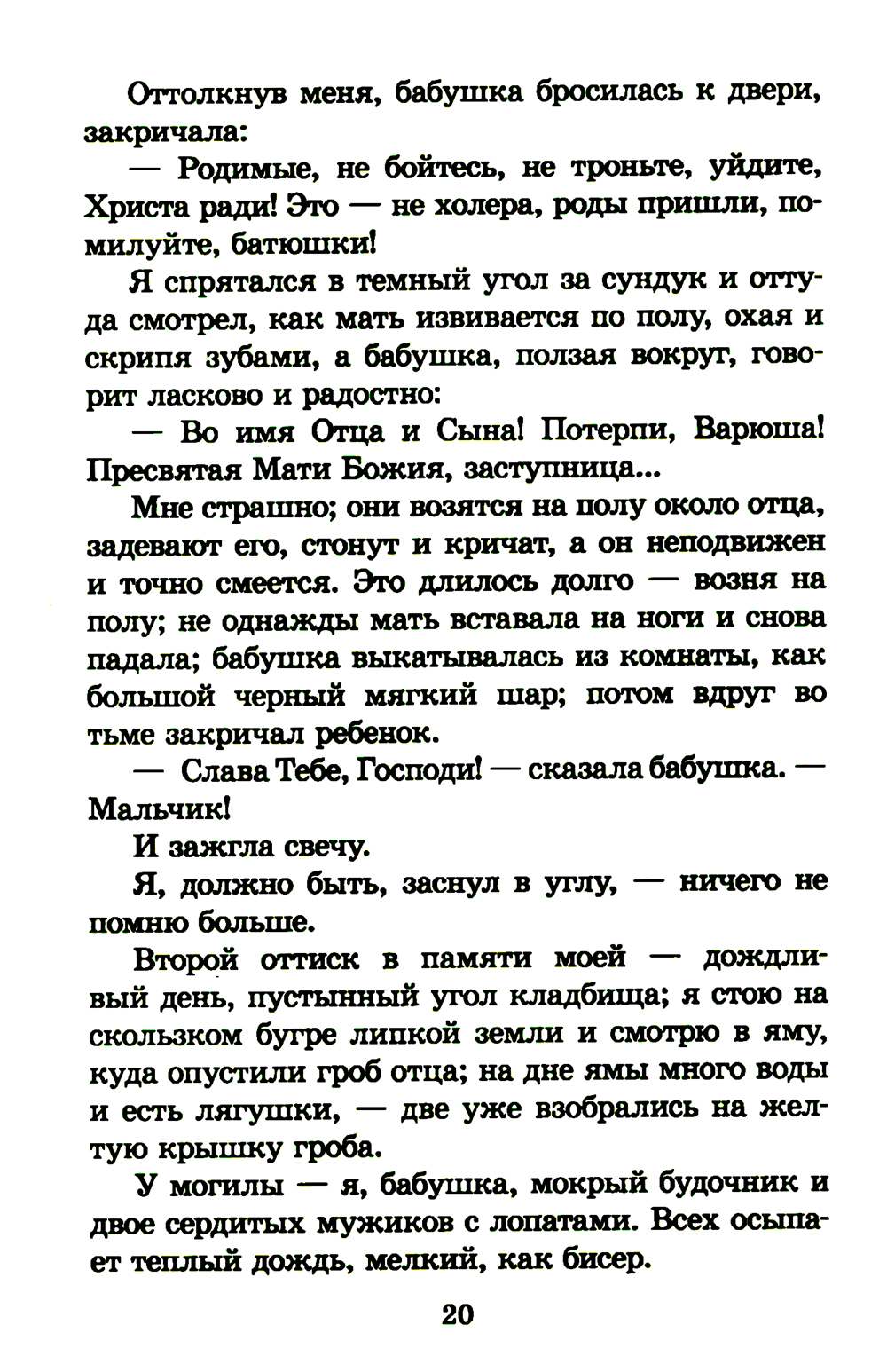 В книгу вошла первая повесть знаменитой автобиографической трилогии Максима Горького «Детство», «В людях», «Мои университеты». В ней писатель рассказывает о трудных годах своего детства. Для среднего школьного возраста.| Издательство | Детская литература |