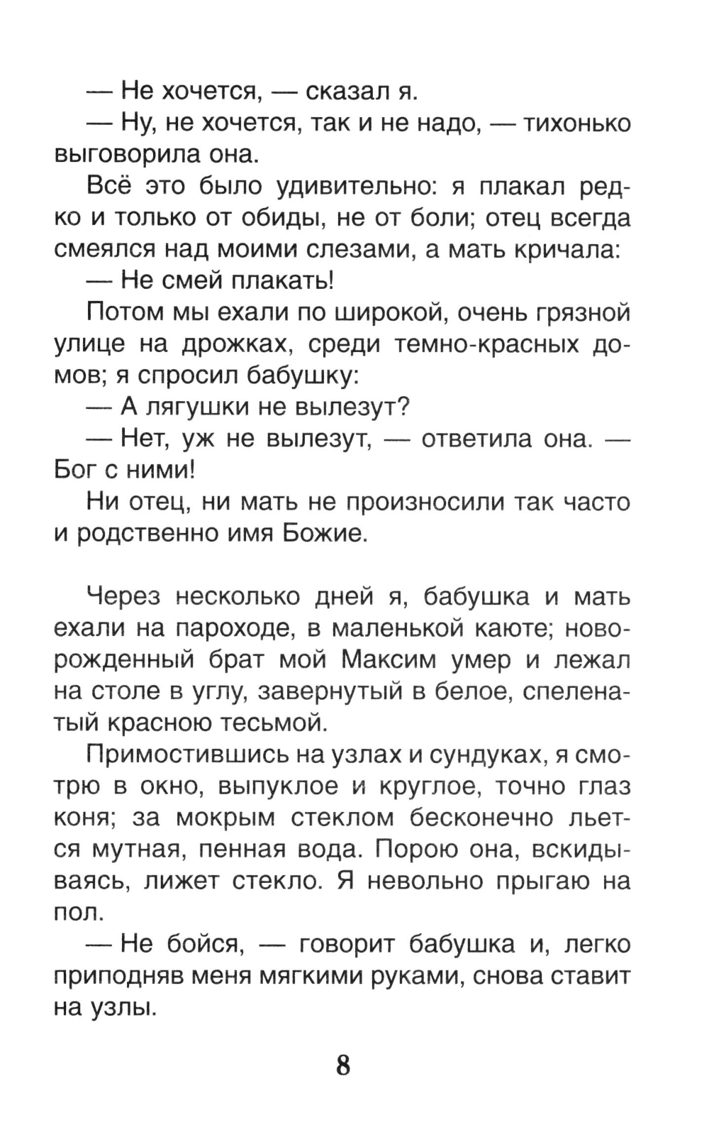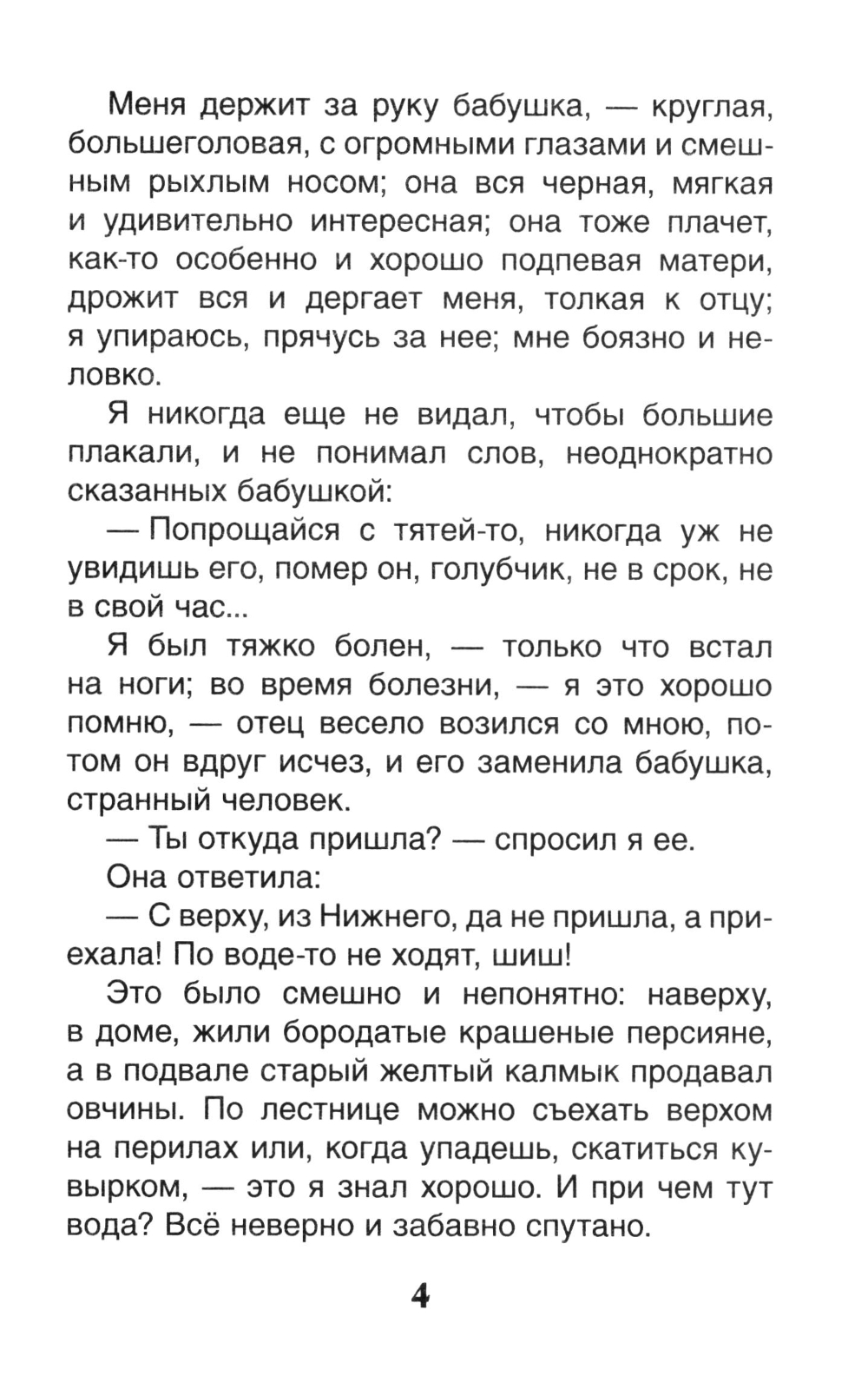 В книгу вошла первая повесть знаменитой автобиографической трилогии «Детство», «В людях», «Мои университеты», признанной одним из самых значительных произведений Максима Горького. В ней писатель рассказывает о трудных годах своего детства. После смерти отца мальчик попадает в дом своего деда, наполненный «горячим туманом взаимной вражды всех со всеми». Только бабушка старалась окружить Алешу любовью и заботой, но никогда не смела перечить мужу-тирану.| Издательство | РОСМЭН |