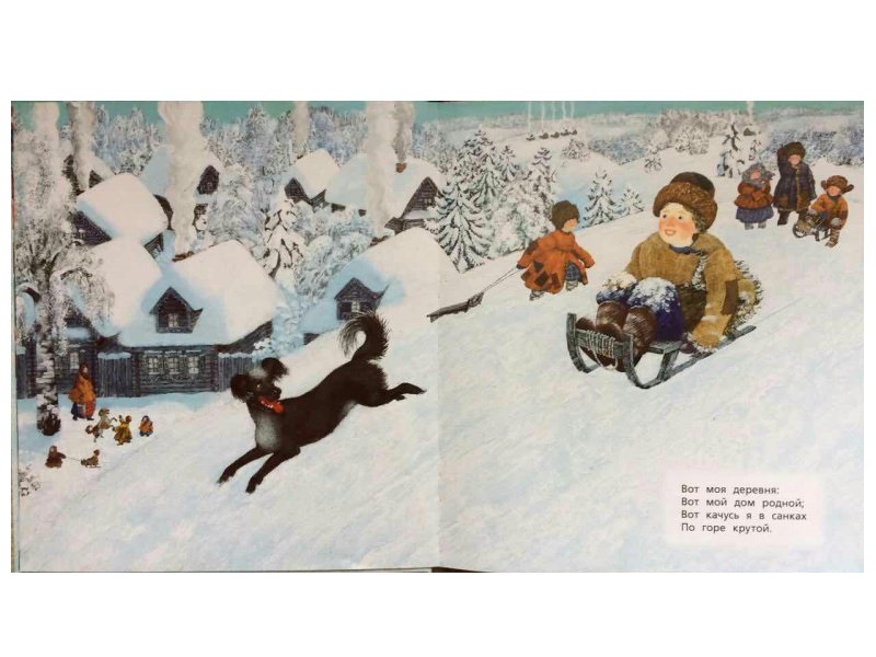 Отрывок из стихотворения Ивана Сурикова (1841-1880) знаком каждому со школьных лет. Удивительно, но именно эта известность сыграла с произведением злую шутку: первые строфы стали восприниматься как самостоятельное произведение о смешном случае с деревенским мальчишкой - катился с горки да кувыркнулся в снег на потеху друзьям. А стихотворение Сурикова намного глубже и тоньше. Оно - о чистом и весёлом мире детства. Оно - о почти утраченном сейчас мире русской деревни. Оно - о мире сказки, радостной и свободной детской мечте.