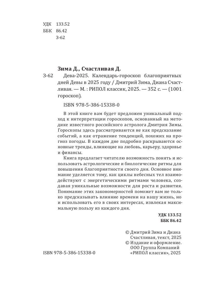 Аннотация: Дева-2025. Календарь-гороскоп благоприятных дней Девы в 2025 году