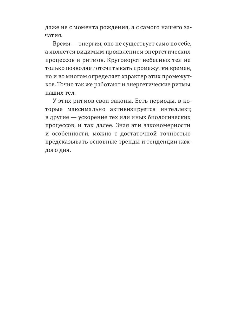 В этой книге вам будет предложен уникальный подход к интерпретации гороскопов, основанный на методике известного российского астролога Дмитрия Зимы. Гороскопы здесь рассматриваются не как предсказание событий, а как отражение тенденций, похожих на прогноз погоды. В каждом дне подробно раскрываются основные тренды, влияющие на любовь, карьеру, здоровье и финансы. Книга предлагает читателю возможность понять и использовать астрологические и биологические ритмы для повышения благоприятности своего дня. Основное внимание уделяется тому, как циклы небесных тел взаимодействуют с энергетическими ритмами человека, создавая уникальные возможности для роста и развития. Понимание этих закономерностей поможет вам не только предсказывать влияние времени на вашу жизнь, но и использовать его в своих интересах, извлекая максимальную пользу из каждого дня.| Издательство | Рипол Классик |