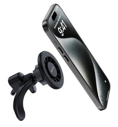 Магнитный держатель предназначен для крепления на различных типах вентиляционных решеток. Головка имеет возможность вращения на 360° и обеспечивает удобное расположение экрана телефона. В комплект входит металлический диск для телефонов, не имеющих функции магнитного крепления.