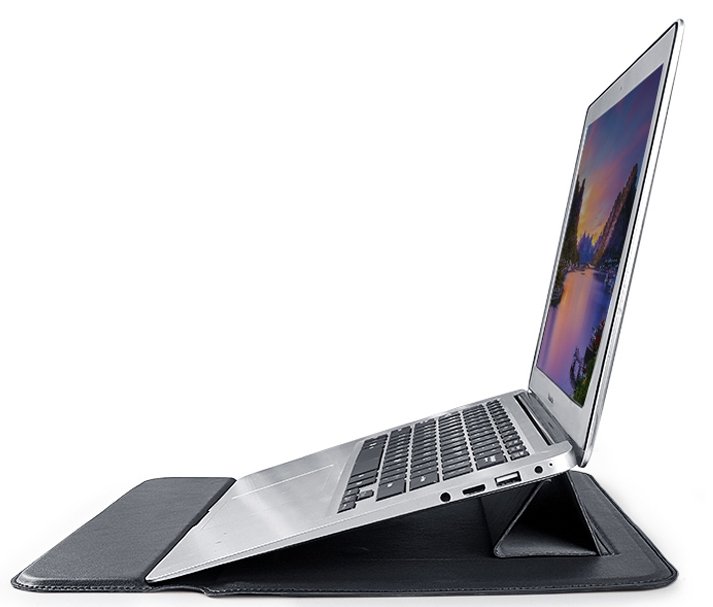 Чехол для ноутбука с функцией подставки позволяет устанавливать устройство под углом 9°. Работать в таком положении удобнее и эргономичнее.