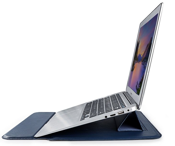 Чехол для ноутбука с функцией подставки позволяет устанавливать устройство под углом 9°. Работать в таком положении удобнее и эргономичнее.