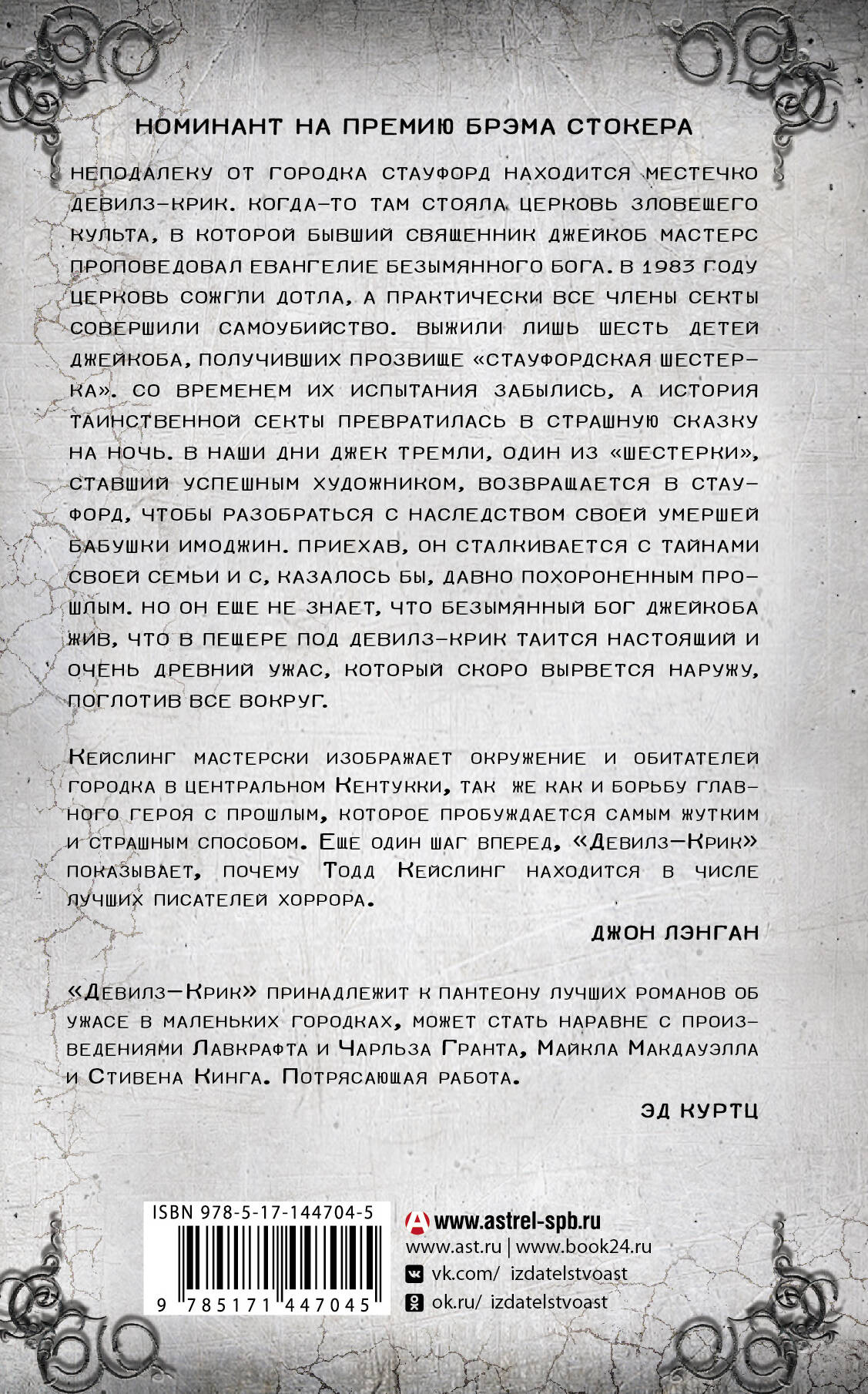 Впервые на русском языке! Один из лучших романов Тодда Кейслинга, автора, которого называют в числе главных современных представителей жанра хоррор. Номинант на премию Брэма Стокера в номинации «Лучший роман». Для поклонников Стивена Кинга, Рональда Малфи и Адама Нэвилла.| Издательство | ИЗДАТЕЛЬСТВО "АСТ" |
