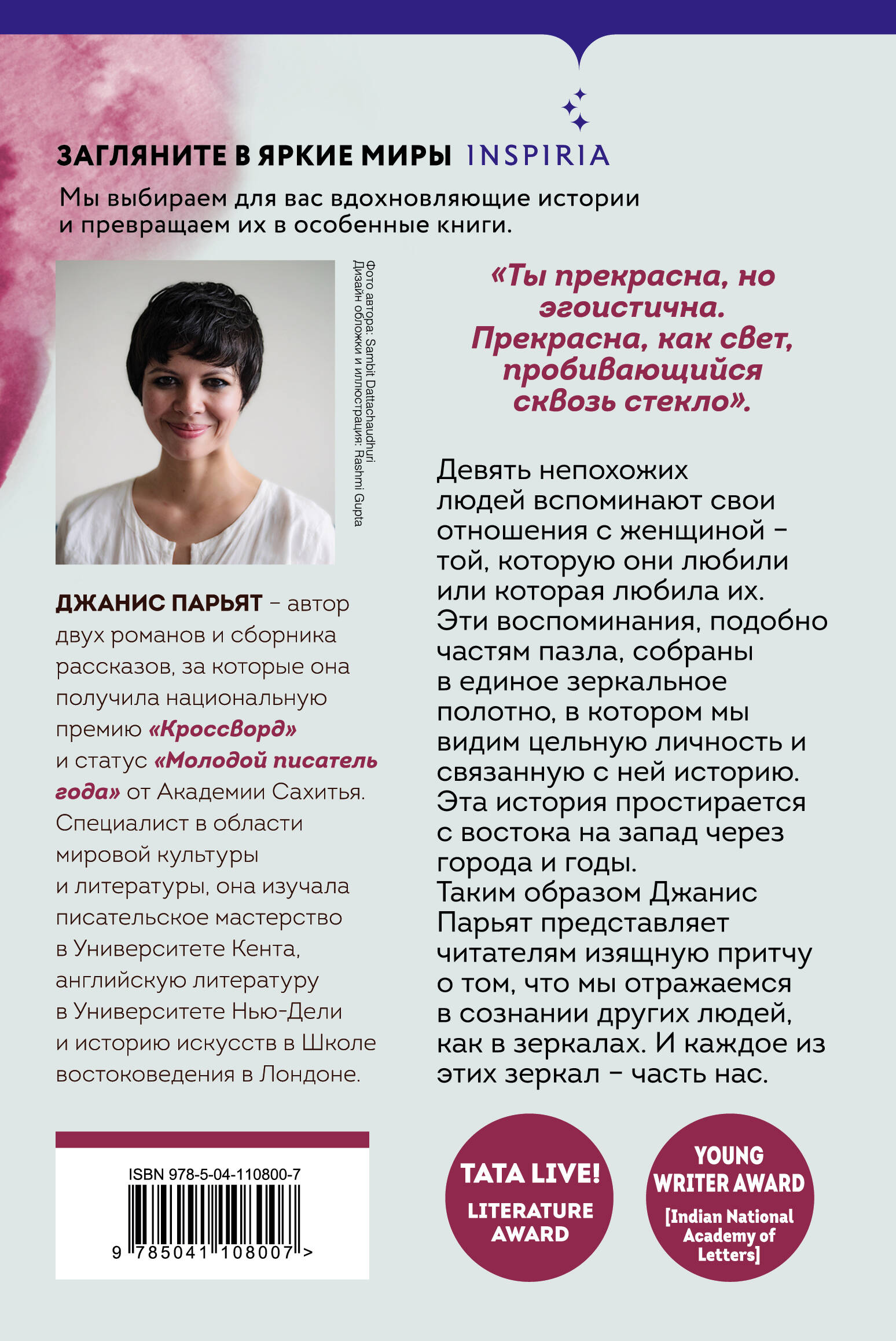 Девять непохожих людей вспоминают свои отношения с женщиной - той, которую они любили или которая любила их. Эти воспоминания, подобно частям паззла, собраны в единое зеркальное полотно, в котором мы видим цельную личность и связанную с ней историю. Эта история простирается с Востока на Запад через города и годы. Таким образом Джанис Парьят представляет читателям изящную притчу о том, что мы отражаемся в сознании других людей, как в зеркалах. И каждое из этих зеркал - часть нас.| Издательство | ООО "Издательство "Эксмо" |