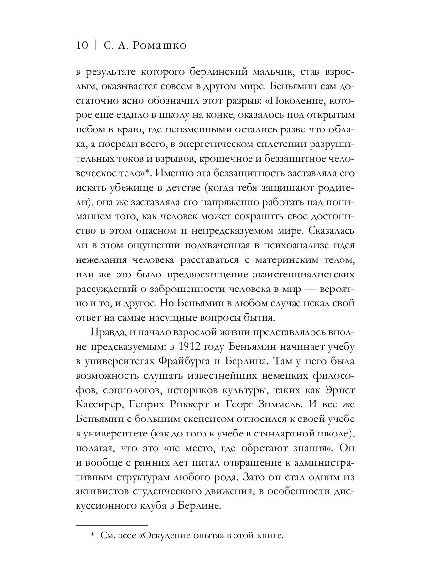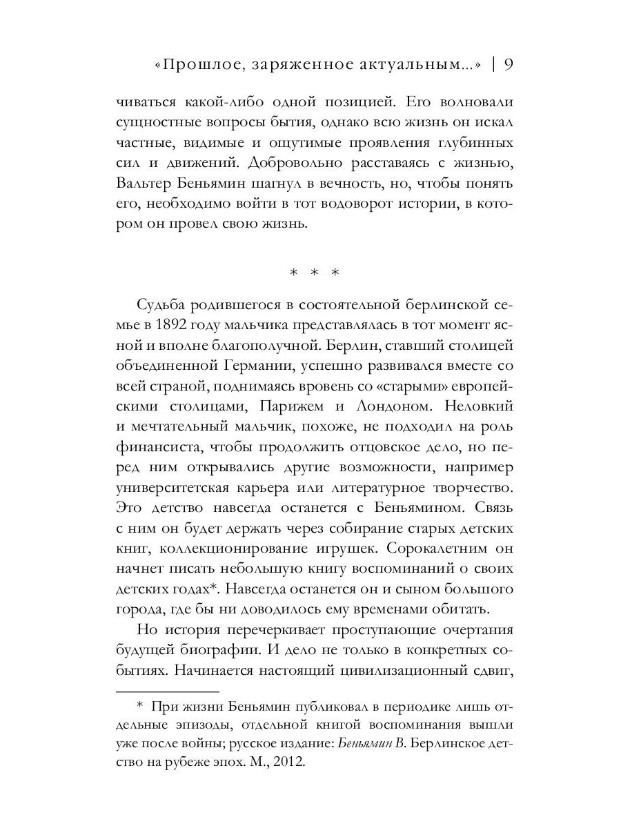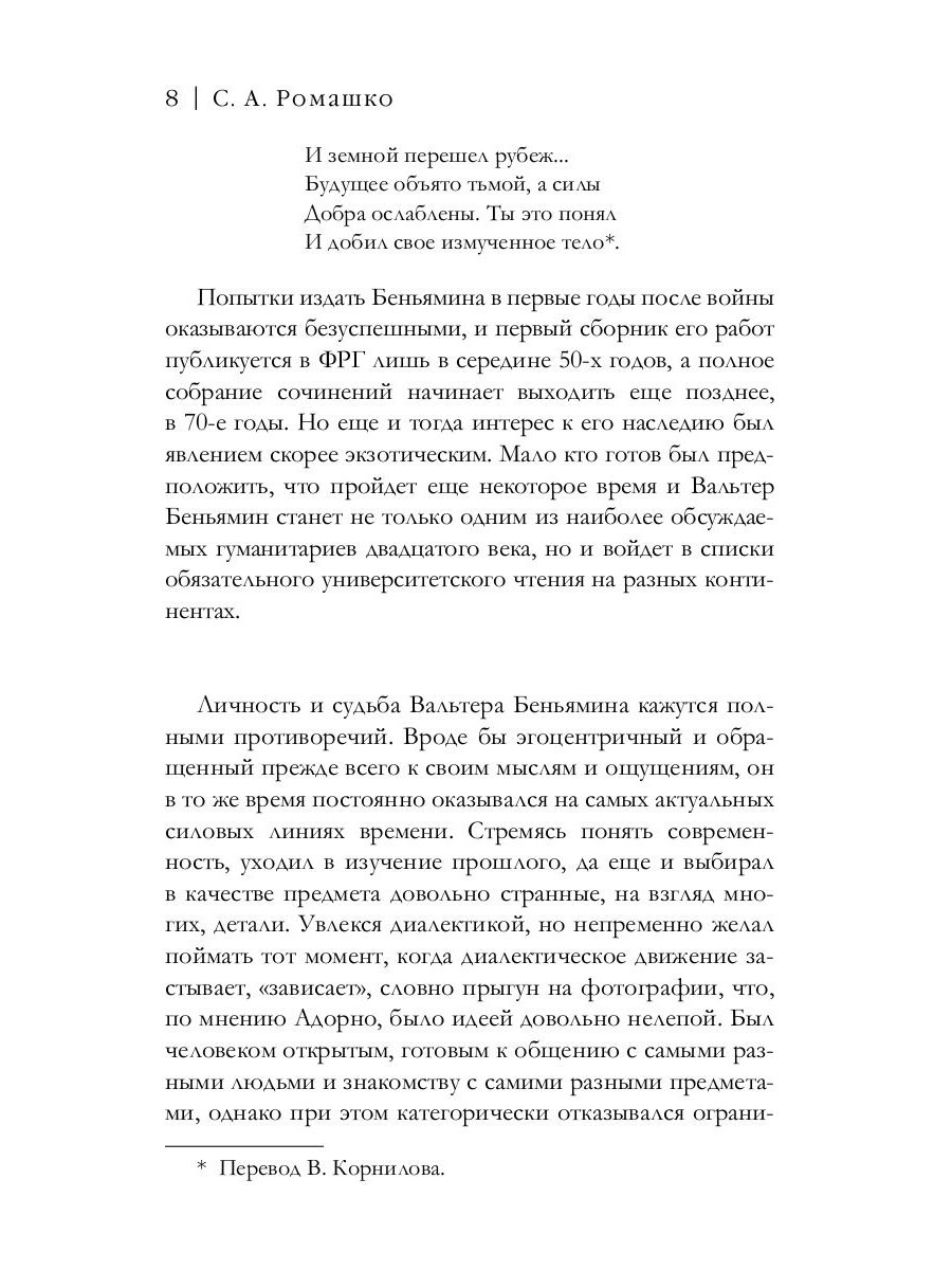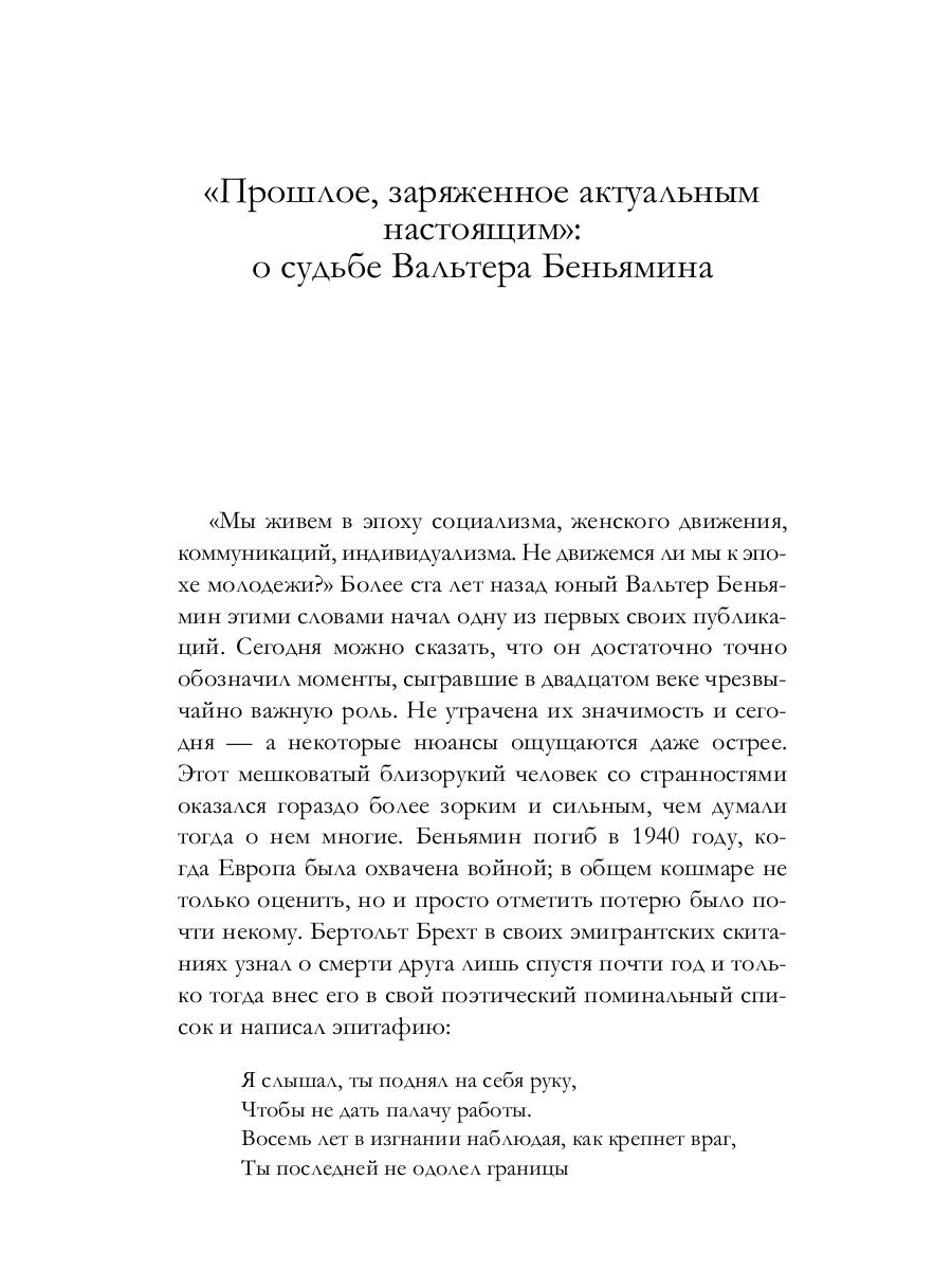 Вальтер Беньямин - воплощение образцового интеллектуала XX века; философ, не имеющий возможности найти своего места в стремительно меняющемся культурном ландшафте своей страны и всей Европы, гонимый и преследуемый, углубляющийся в недра гуманитарного знания - классического и актуального, - импульсивный и мятежный, но неизменно находящийся в первом ряду ведущих мыслителей своего времени.