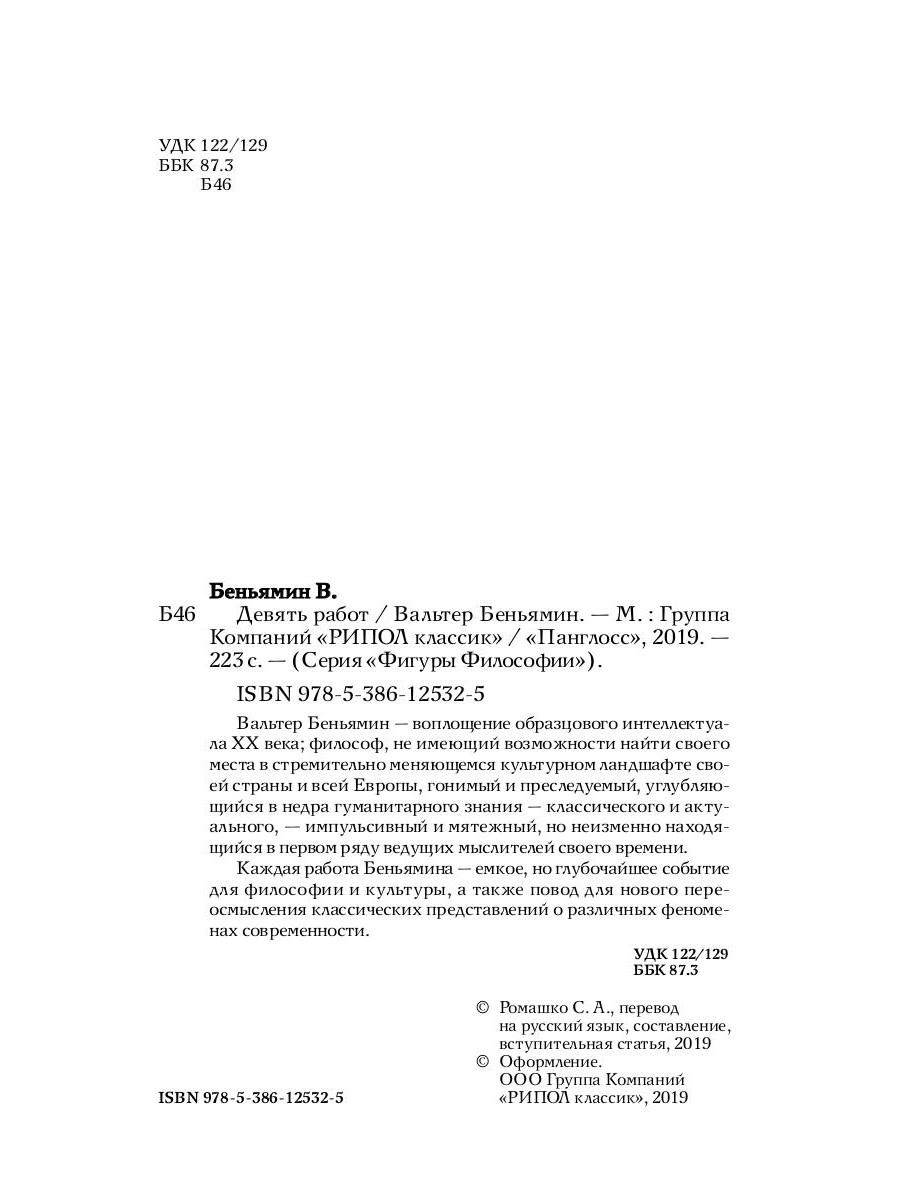 Каждая работа Беньямина - емкое, но глубочайшее событие для философии и культуры, а также повод для нового переосмысления классических представлений о различных феноменах современности.