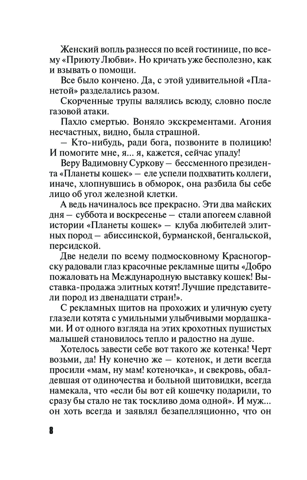 Говорят, там, где появляется Проклятая коллекция - в доме, в музейном собрании... - всегда начинают происходить странные и загадочные события. И бесспорно, она тянет за собой шлейф смертей. Вы в это верите? Однако когда в музей доставили Проклятую коллекцию, уникальные древнеегипетские артефакты, Дарья Юдина явилась с аудиторской проверкой Счетной палаты и... была убита. Что это? Совпадение? Поразительное стечение обстоятельств? Или?.. А чуть раньше в Красногорске какой-то злоумышленник отравил в зоогостинице всех кошек, которых привезли на международную выставку. Катя Петровская, капитан полиции, сотрудник пресс-центра ГУВД Московской области, и ее подруга Анфиса, фотограф, принимают самое активное участие в расследовании этих жестоких преступлений, едва не стоивших жизни им самим...| Издательство | Эксмо |