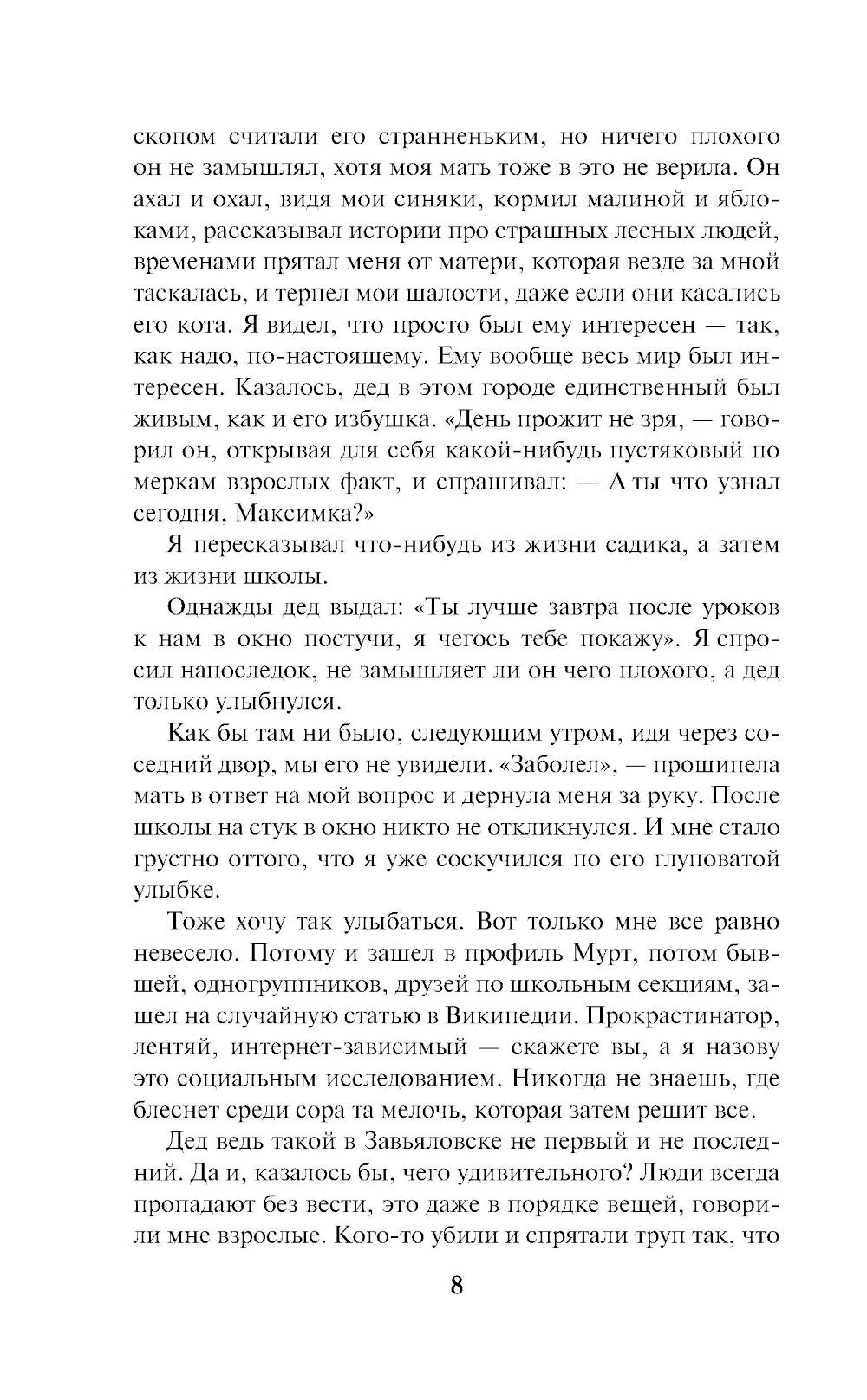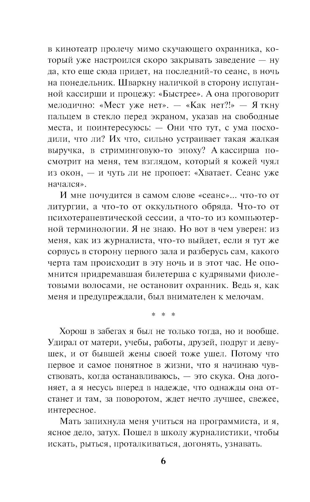 Девять разных авторов объединили свои силы и за шесть недель написали удивительный, яркий роман о застывшем в янтаре вечности вымышленном городке Завьяловске. Здесь каждый, получив билет на киносеанс, обретёт шанс изменить всё. Сделать это можно по-разному: кто-то захочет быть вместе с возлюбленным, а кто-то - вместе с единственным другом. Кто-то попадёт в другое время и место, а кто-то, прежде легкомысленный, найдёт смысл жизни. Найдётся и тот, кто решит стать чуть ли не богом. И всем им для этого понадобится исчезнуть.| Издательство | Эксмо |