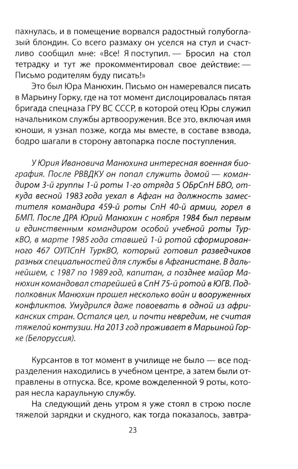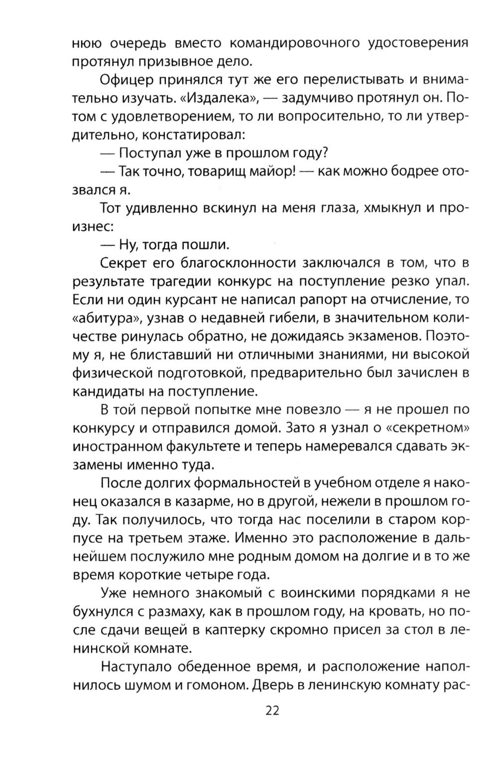 В августе 1968 года в Рязанском училище ВДВ по новому штату было сформировано два батальона курсантов (по 4 роты в каждом) и отдельная рота курсантов частей спецназначения (9-я рота). Основная задача последней - подготовка командиров групп для частей и соединений спецназа ГРУ. Девятая рота, пожалуй, единственная, ушедшая в легенду целым подразделением, а не конкретным списочным составом. Прошло уже больше тридцати лет с тех пор, как она перестала существовать, но слава о ней не угасает, а скорее, наоборот, растёт. Андрей Бронников был курсантом легендарной 9-й роты в 1976-1980 годах. Спустя много лет он честно и подробно рассказал обо всем, что с ним произошло за это время. Начиная с момента поступления и заканчивая вручением лейтенантских погон...