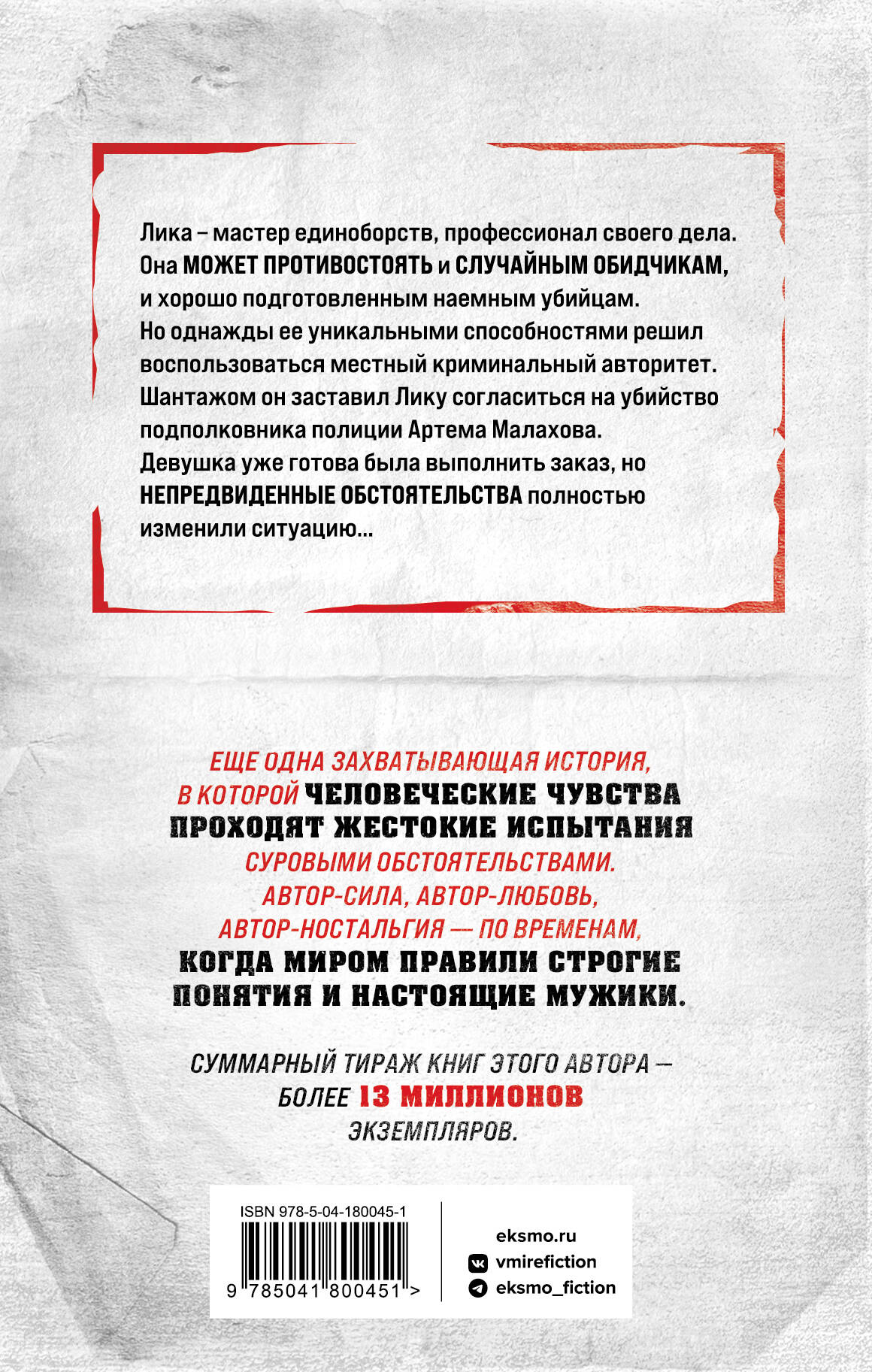 Лика - мастер единоборств, профессионал своего дела. Она может противостоять и случайным обидчикам, и хорошо подготовленным наемным убийцам. Но однажды ее уникальными способностями решил воспользоваться местный криминальный авторитет. Шантажом он заставили Лику согласиться на убийство подполковника полиции Артема Малахова. Девушка уже готова была выполнить заказ, как непредвиденные обстоятельства полностью изменили ситуацию… Еще одна захватывающая история, в которой человеческие чувства проходят жестокие испытания суровыми обстоятельствами. Автор-сила, автор-любовь, автор-ностальгия - по временам, когда миром правили строгие понятия и настоящие мужики. Суммарный тираж книг этого автора - более 13 миллионов экземпляров.| Издательство | ООО "Издательство "Эксмо" |