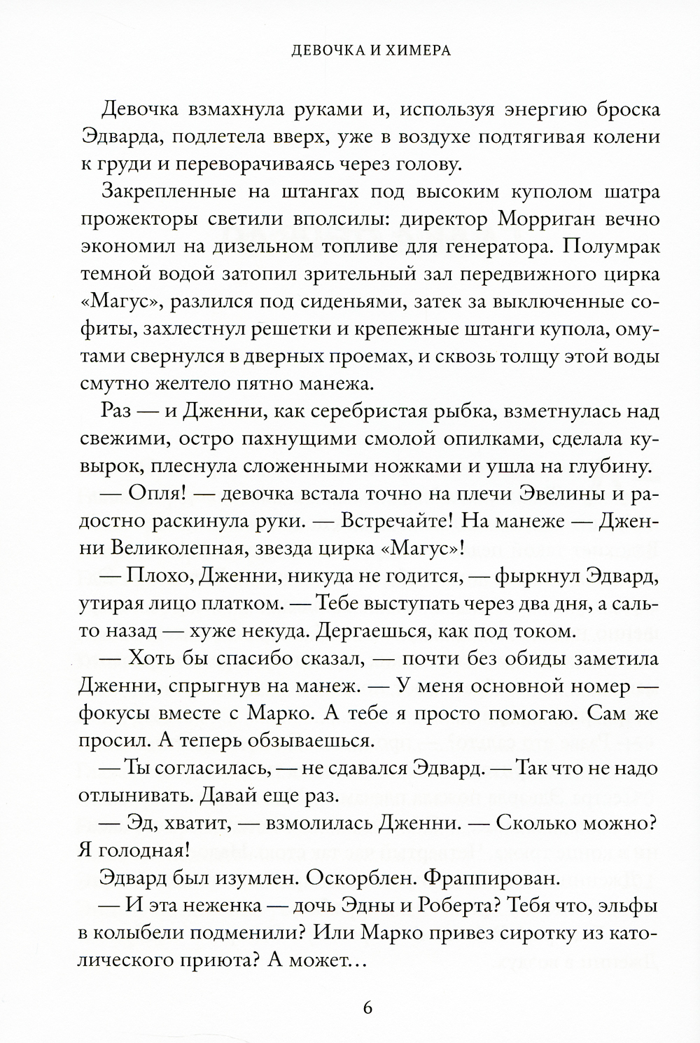 Еще в начале августа ее жизнь была проста и понятна: она, Дженни Далфин, внучка и ассистентка фокусника Марко Франчелли, жила и работала в цирке шапито. У нее были друзья - воздушные акробаты Эдвард и Эвелина, силач Людвиг и его помощник Джеймс. У нее были враги - дрессировщик Роджер, хам и грубиян, и его ученик Калеб. Но однажды ночью все изменилось. Дженни проведала, что в цирке держат контрабандных животных, и решила их освободить. Кто же мог знать, что это не простые животные, а магические! Кто вообще мог подумать, что в мире еще осталось колдовство, что их цирк - вовсе не цирк, а древнее братство Магус и сама она - полноправный член этого сообщества, а значит, должна понести за свой проступок суровое наказание. Но сначала девочке предстоит поймать ледяную химеру - страшное волшебное существо, которое она выпустила из клетки.| Издательство | Абрикобукс |