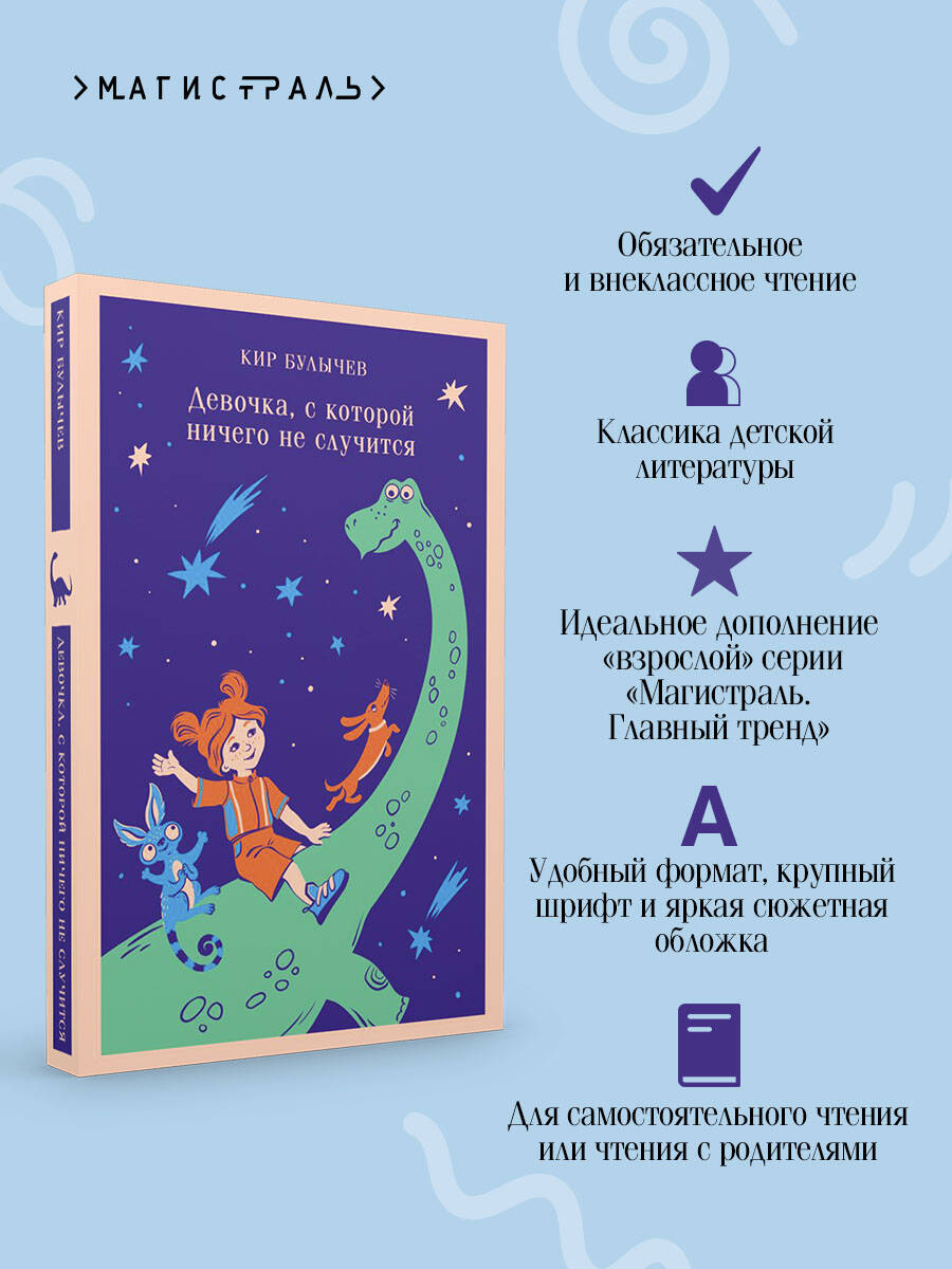 В книгу входят три добрые и весёлые произведения Кира Булычева об Алисе Селезневой, девочке из будущего. "Девочка, с которой ничего не случится" - это произведение о мире фантастики и мире приключений. Главная героиня повести -.Алиса, идет в школу, в первый класс. Алиса обладает не только необычайным воображением, но и способностью находить выход из самых сложных и опасных ситуаций. Её оптимизм и жизнерадостность помогают ей заводить новых друзей (даже бронтозавров) и переживать удивительные приключения, полные чудес и открытий. "Ржавый фельдмаршал" -в центре повествования команда исследователей, которые отправляются на далекую планету, где их ждет борьба за выживание с восставшими роботами. Автор умело сочетает захватывающий сюжет с глубокими философскими размышлениями о месте человека в огромной Вселенной, о его ответственности за свои открытия и действия. Погружаясь в ярко описанный мир будущего, читатель неизменно задается вопросами о морали, человечности и технологическом прогрессе. "Заповедник сказок" Кира Булычева - это путешествие Алисы в заповедник, который является домом для различных персонажей из народных и литературных сказок. В этом заповеднике встречаются средневековые рыцари, драконы, ведьмы и говорящие животные, а также необычные машины будущего. Булычёв мастерски сочетает в повести фантастические элементы с реалистичностью. Эта история станет настоящим подарком для детей и взрослых, напомнив о волшебстве и чудесах, которые всегда можно найти вокруг нас. Осторожно! Это детям! «Магистраль. Дети» - яркая, удобная серия книг для детей, а также их родителей и учителей. Книги из этой серии можно читать где угодно: в школе, дома, в дороге или на даче. Они легкие и прочные. Сюжетные черно-белые картиночки почти на каждой странице и цветные иллюстрации на вкладках удачно дополняют издание. В серии собраны только лучшие и проверенные временем произведения.| Издательство | ООО "Издательство "Эксмо" |