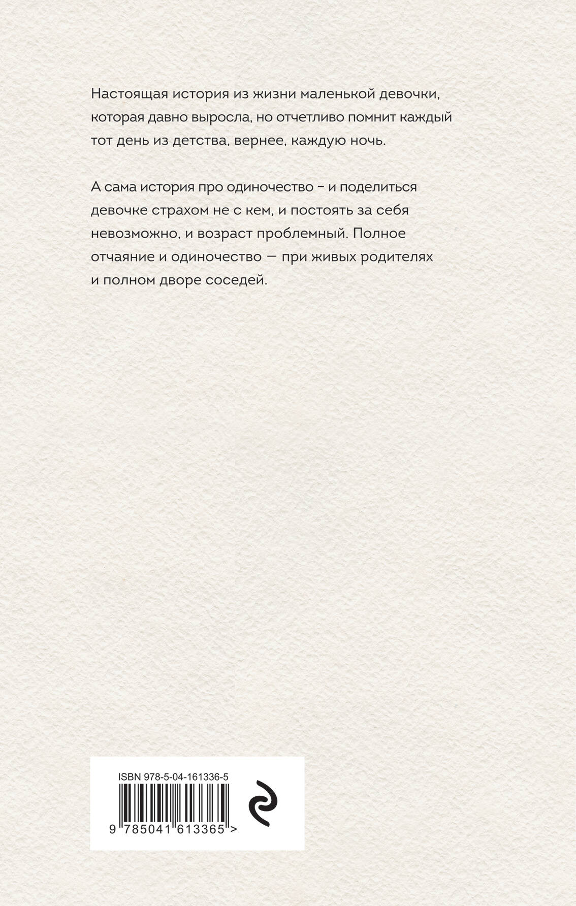 Настоящая история из жизни маленькой девочки, которая давно выросла, но отчетливо помнит каждый тот день из детства, вернее, каждую ночь. А сама история про одиночество - и поделиться девочке страхом не с кем, и постоять за себя невозможно, и возраст проблемный. Полное отчаяние и одиночество - при живых родителях и полном дворе соседей. Для переиздания лучших книг прозы Рождественской мы создали новое, современной оформление. Оно сочетает в себе женственную мягкость урбанистических иллюстраций и мужскую четкость шрифтовых линий. Спешите собрать серию в новых обложках!| Издательство | Эксмо |