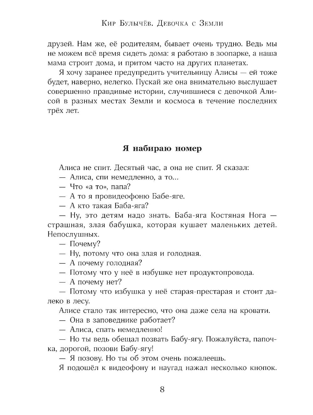 Самые первые истории о знаменитой «гостье из будущего» Алисе Селезнёвой! В книгу вошли повести «Девочка, с которой ничего не случится», «Путешествие Алисы» и «День рождения Алисы». Именно с них началась знаменитая серия книг Кира Булычёва, поклонниками которых стали тысячи детей, с нетерпением ждавших всё новых и новых книг о приключениях Алисы. В первых же повестях девочка из будущего приручает бронтозавров и путешествует во времени, знакомится с невероятными инопланетными существами и спасает от гибели целую планету. Повести выходят с классическими чёрно-белыми иллюстрациями Евгения Мигунова. Для детей 11-14 лет.| Издательство | Изд. Лабиринт Пресс |