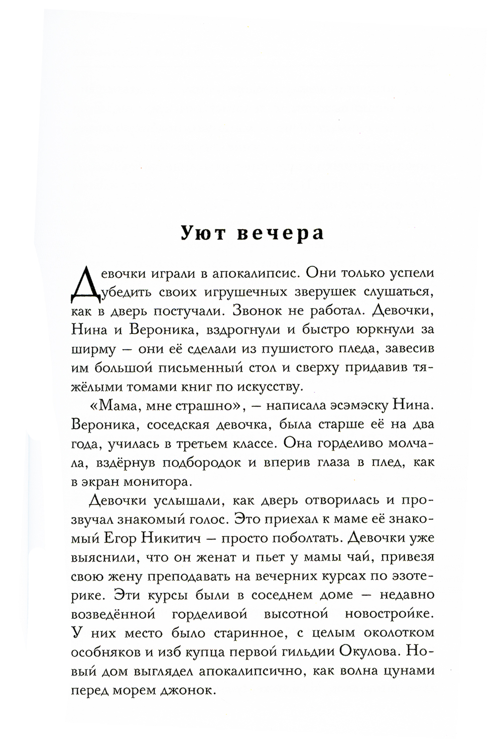 Действие рассказа «Девочки играли в апокалипсис», давшего название сборнику, на первый взгляд, незамысловато. Но сквозь него проглядывает тревога. Что будет с этим миром, с этой каплей тихого вечера, стеснённого со всех сторон темнотой и снегом, - завтра, послезавтра? Девочки, играющие в апокалипсис, а не мальчики - в войну, как это было ещё недавно, предстают перед глазами читателя. Изменился и градус напряжённости: в каждом рассказе сквозит скрытое, не названное, избегающее быть названным.| Издательство | Т8 RUGRAM |