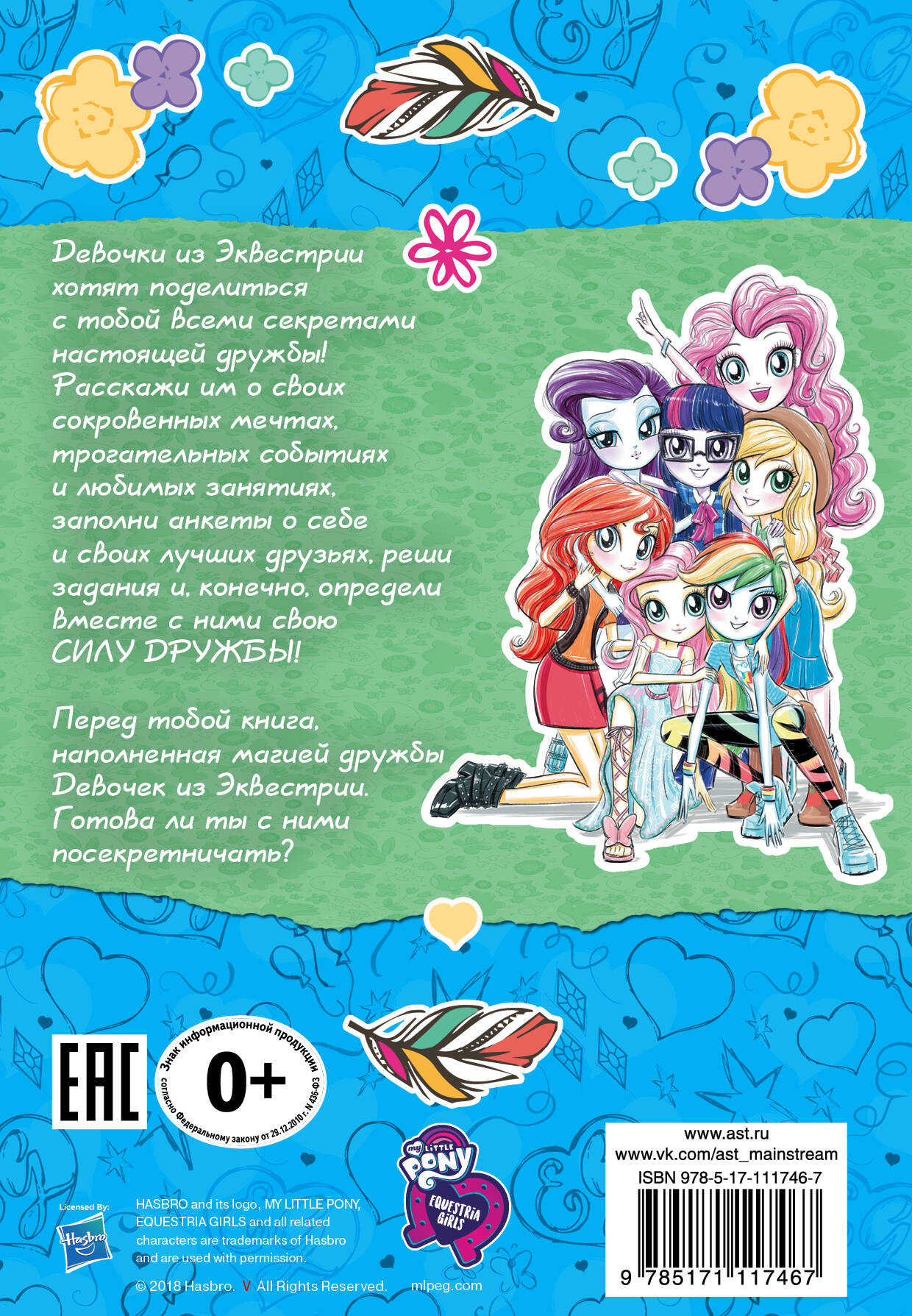 Девочки из Эквестрии хотят поделиться с тобой всеми секретами настоящей дружбы! Расскажи им о своих сокровенных мечтах, трогательных событиях и любимых занятиях, заполни анкеты о себе и своих лучших друзьях, реши задания и, конечно, опрпедели вместе с ними свою СИЛУ ДРУЖБЫ! Перед тобой книга, наполненная магией дружбы Девочек из Эквестрии. Готова ли ты с ними посекретничать?| Издательство | ИЗДАТЕЛЬСТВО "АСТ" |