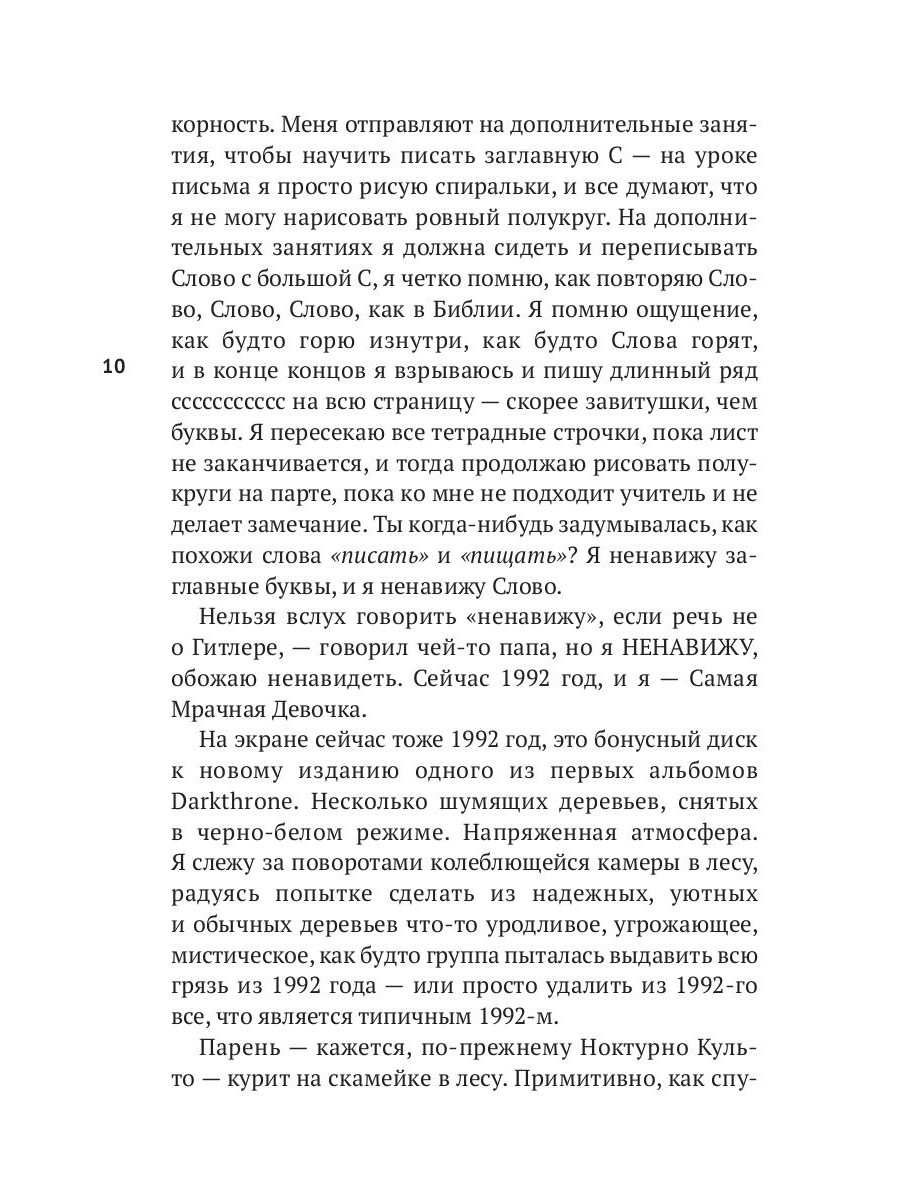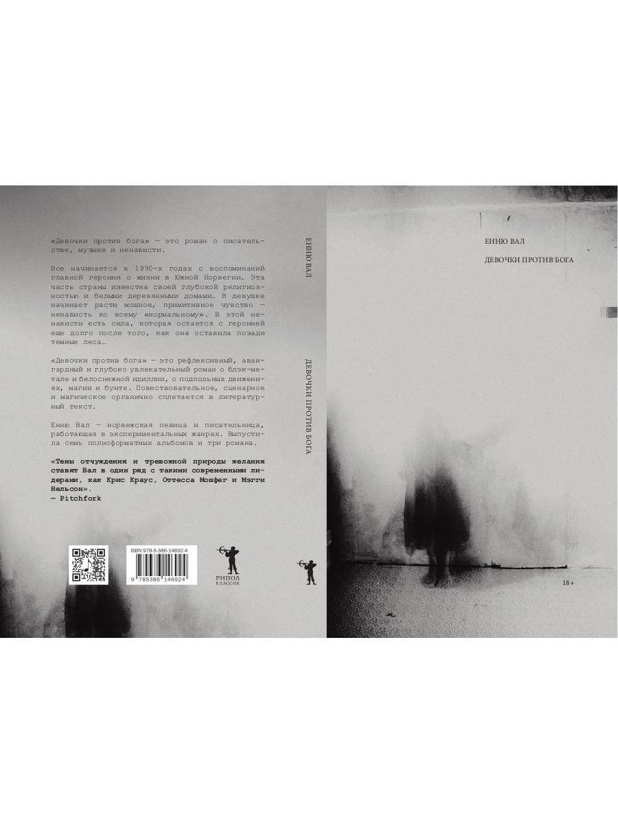 «Девочки против бога» - это роман о писательстве, музыке и ненависти. Все начинается в 1990-х годах с воспоминаний главной героини о жизни в Южной Норвегии. Эта часть страны известна своей глубокой религиозностью и белыми деревянными домами. В девушке начинает расти мощное, примитивное чувство - ненависть ко всему «нормальному». В этой ненависти есть сила, которая остается с героиней еще долго после того, как она оставила позади темные леса… «Девочки против бога» - это рефлексивный, авангардный и глубоко увлекательный роман о блэк-метале и белоснежной идиллии, о подпольных движениях, магии и бунте. Повествовательное, эссеистическое и сценарное органично сплетается в литературный текст. Енню Вал - норвежская певица и писательница, работающая в экспериментальных жанрах. Выпустила семь полноформатных альбомов и три романа.| Издательство | Рипол Классик |